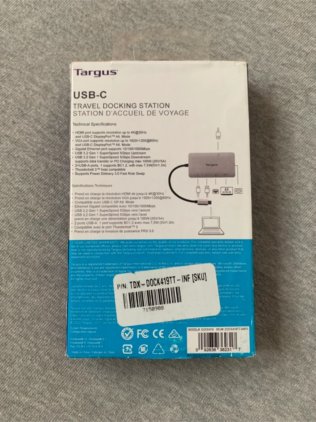 1000+Brand new in box. Key features include: - HDMI: Supports resolution up to 4K@30Hz - USB-C DisplayPort Alt Mode: Supports resolution up to 1920x1200@60Hz - USB 3.2 Gen 1 SuperSpeed 5Gbps Upstream - Ethernet Gigabit compatible with 10/100/1000Mbps - Supports Power Delivery 3.0 Fast Role Swap