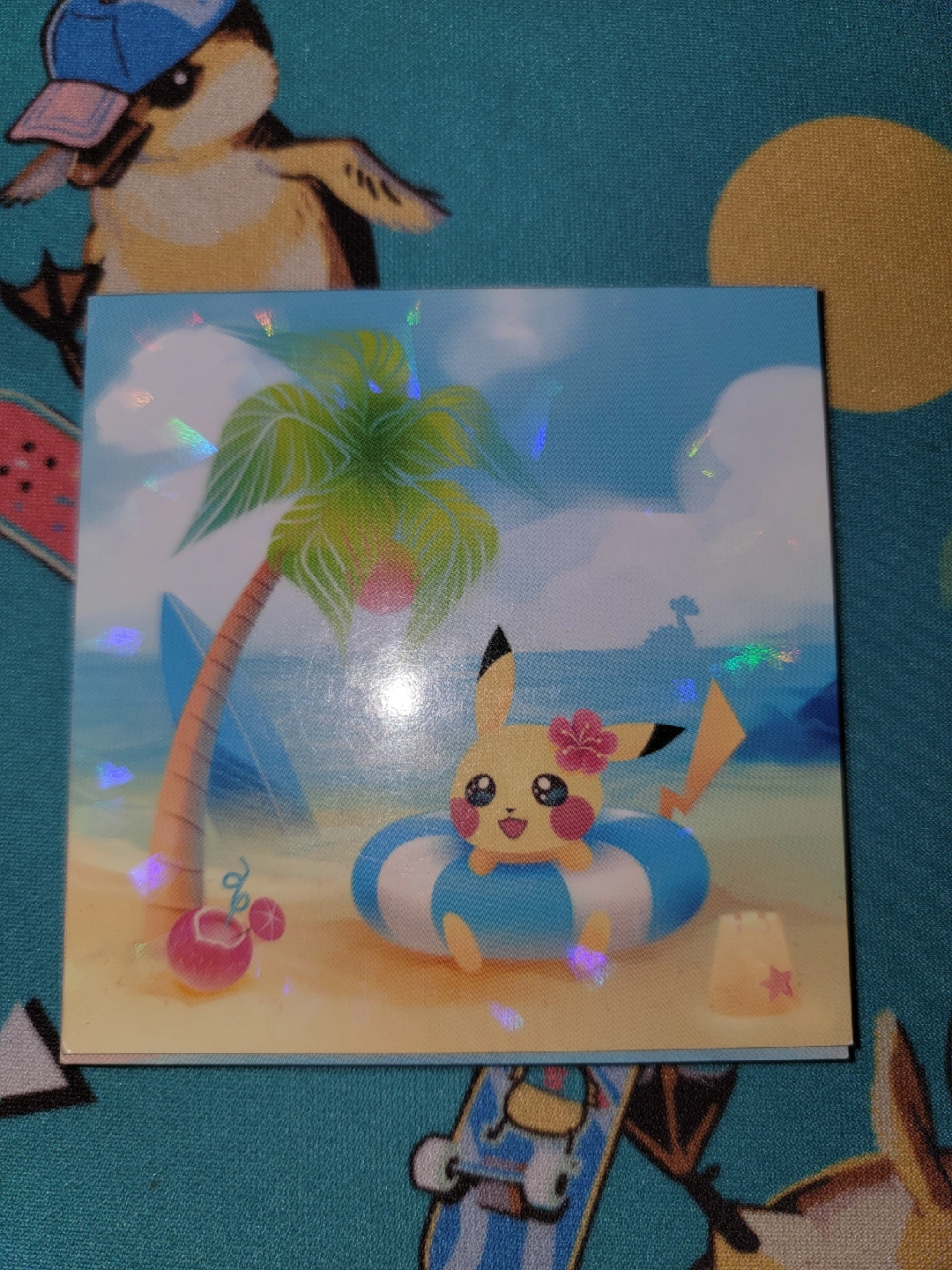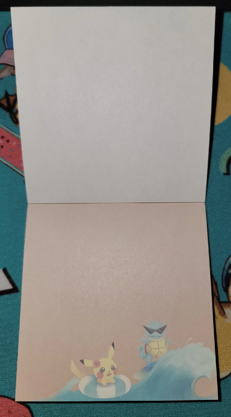 These are some cute Pikachu themed memo notes, perfect for sending a little sunshine to someone's day! They feature Pikachu enjoying a beach vacation. Inside, there's plenty of space to write your message, with a small Pikachu and Squirtle design at the bottom.