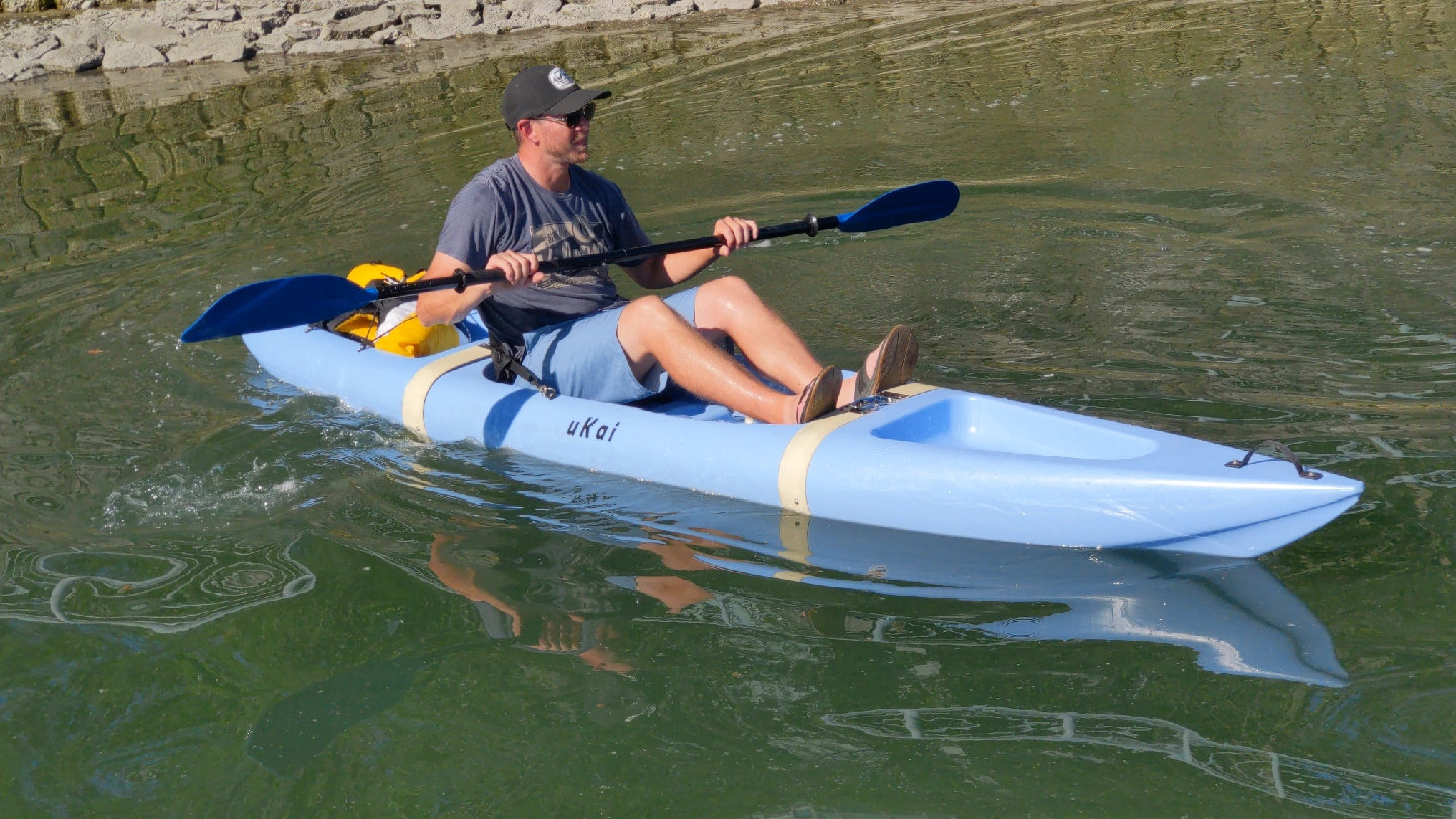 Very sturdy and buoyant( easy to jump in water to swim and cool off and climb back in without it capsizing) , comfy removable seat, cup holder, open foot rests for comfortable leg room.