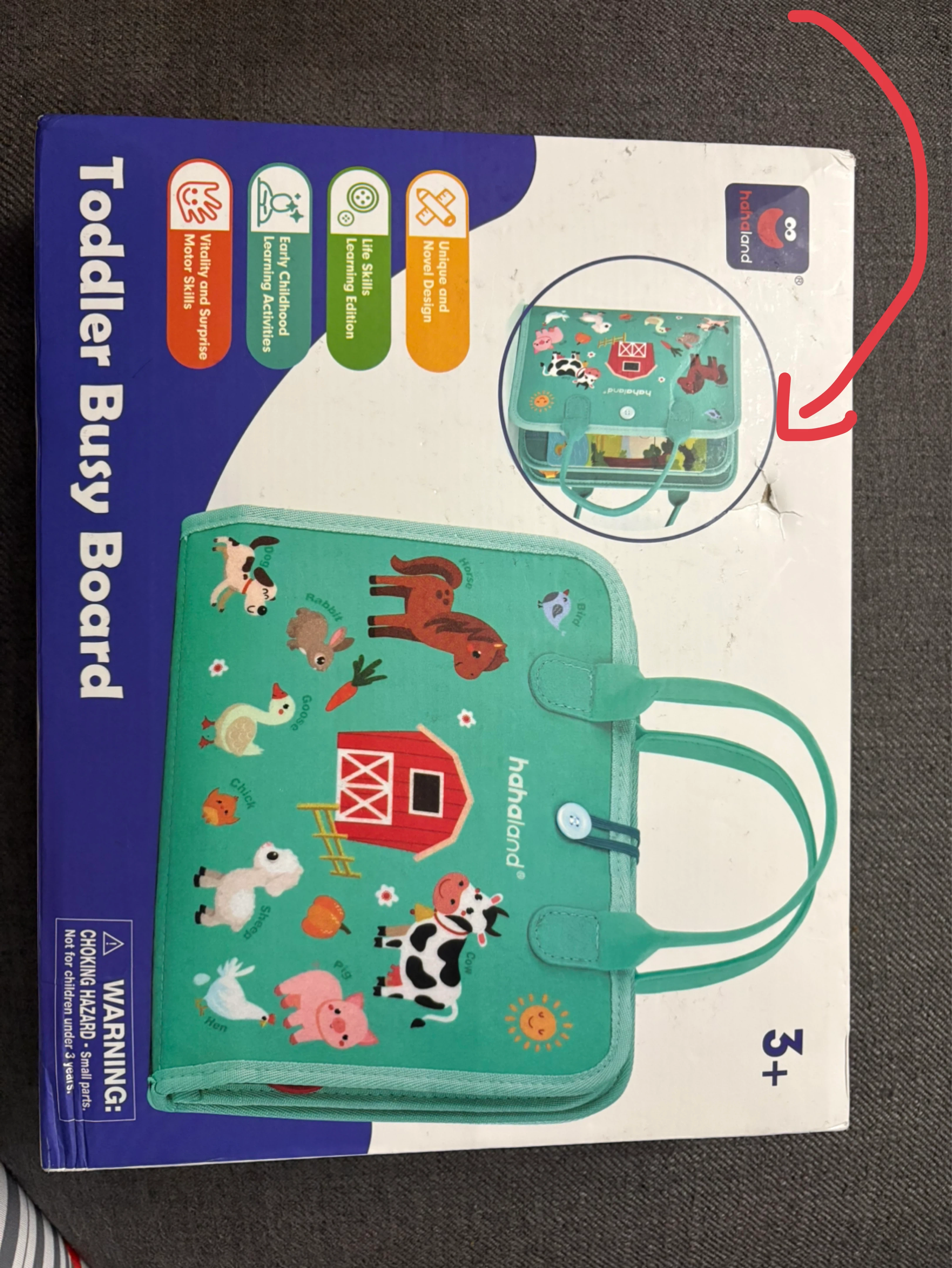 484Brand new hahaland Toddler Busy Board - Toddler Montessori Toys for 3 Year Old Boys Girls, Montessori Busy Board for Toddlers 3-5 Year Old, Educational Learning Toys Gifts for Boys Girls (Farm) Great for birthday gifts Pack has a Little dent as shown in the listing picture Price is firm No holds no delivery Pick up at Cedarhill crescent Kitchener