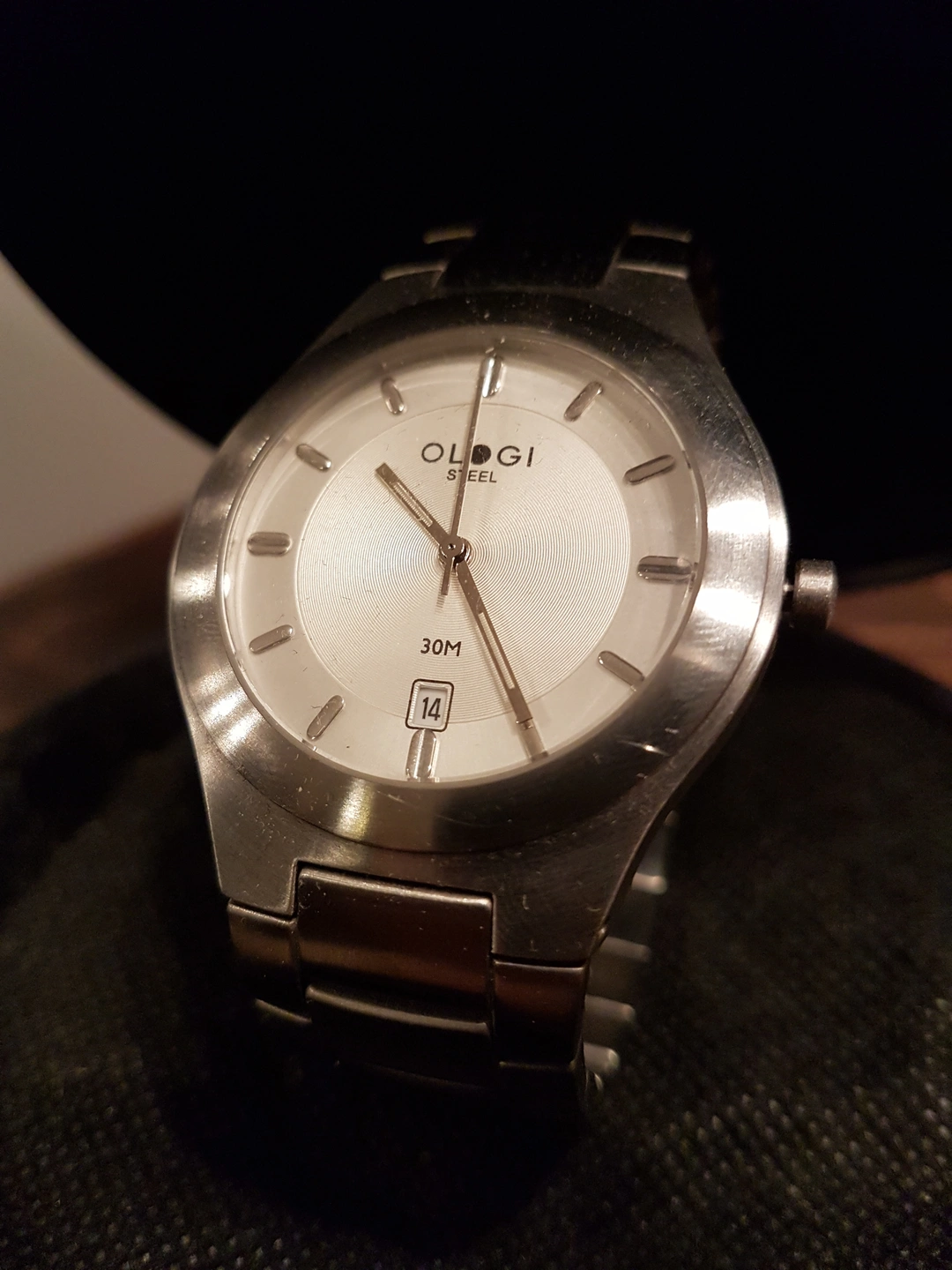 15Ologi Japan Movement 59-319 1.5 inch face (38mm) 30M Water resistant Battery V364 (not included) Stainless steel Extra links included All original paperwork