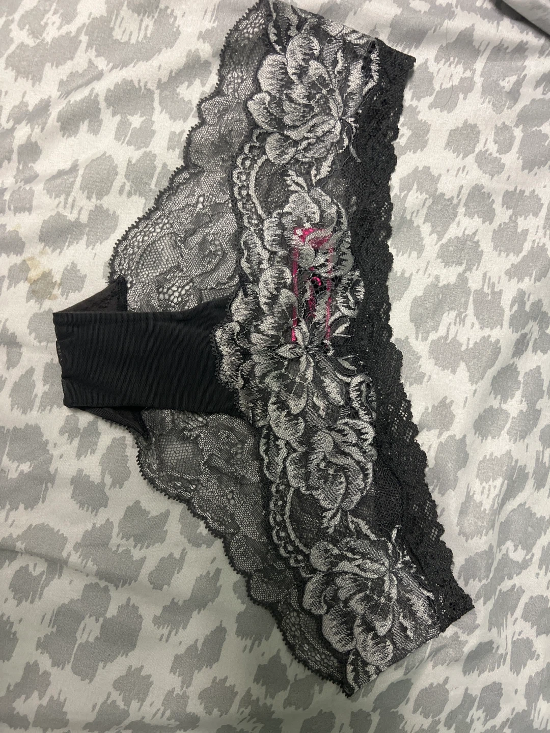Beautiful pair of La Senza panty in size XS/TP! They feature a dark grey and silver lace design that's both elegant and comfortable. Perfect for adding a touch of luxury to your everyday wear!