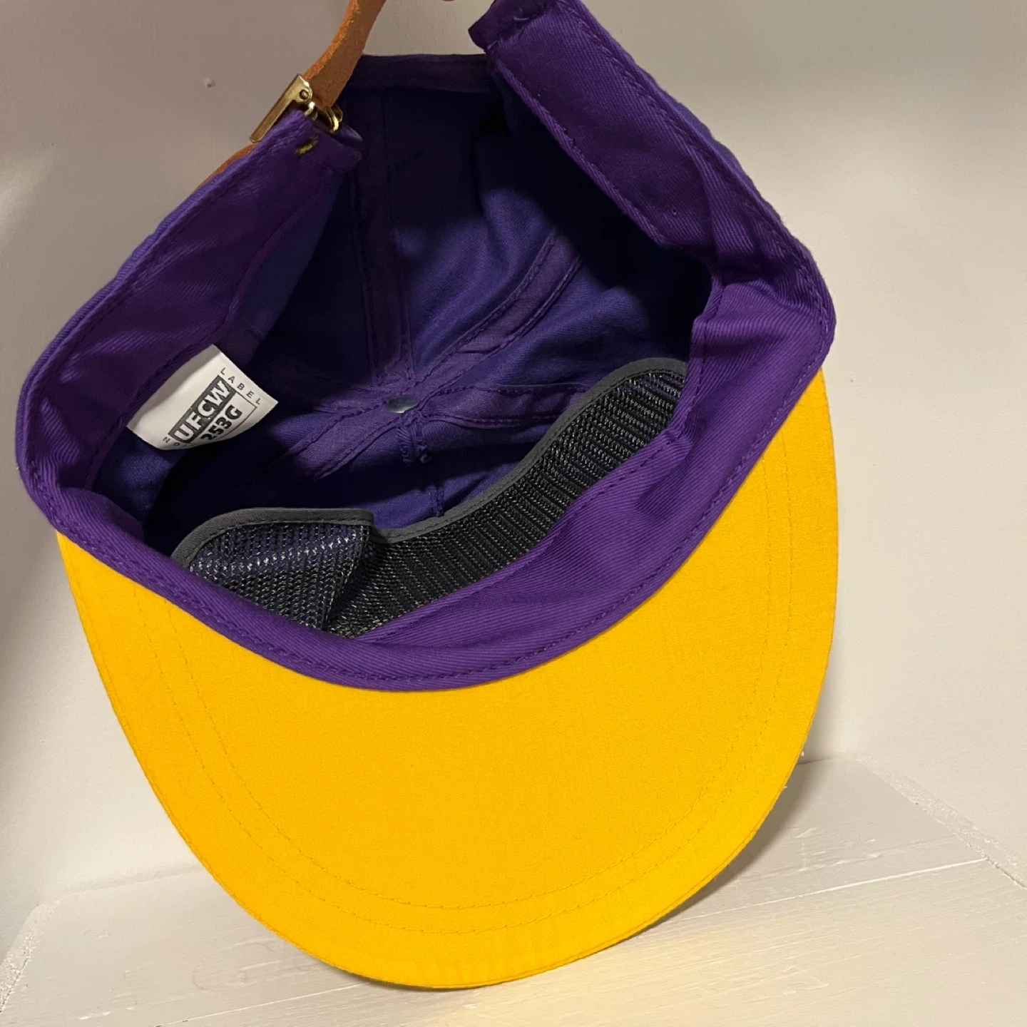 Selling a vintage 90s UFCW NDF (National Defence Fund) CANADA Union hat. Unstructured soft cotton feel with adjustable leather strap and brass buckle.