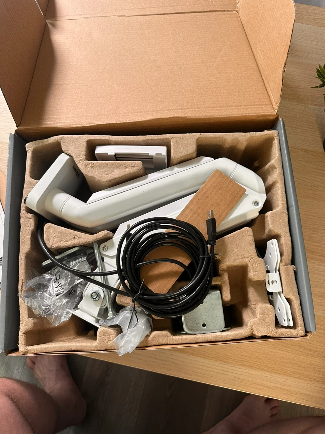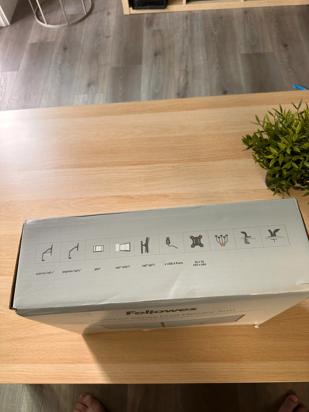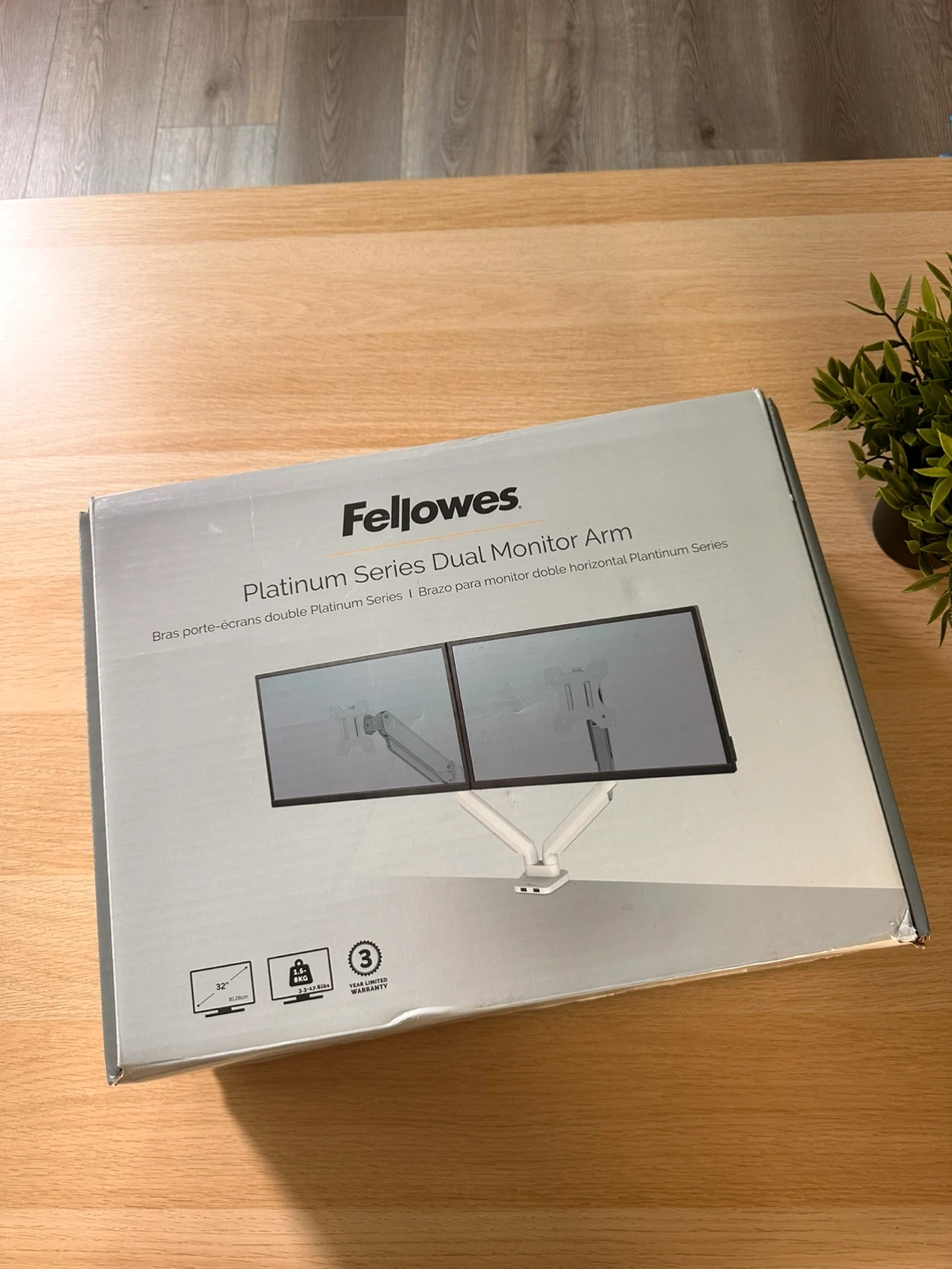 Selling a Fellowes Platinum Series Dual Monitor Arm! It's in great condition and comes with all the original components and box. This arm can hold two monitors and is designed for monitors up to 32". It also has 2 USB A ports. The arm is white and allows for easy adjustment of your monitors for optimal viewing
