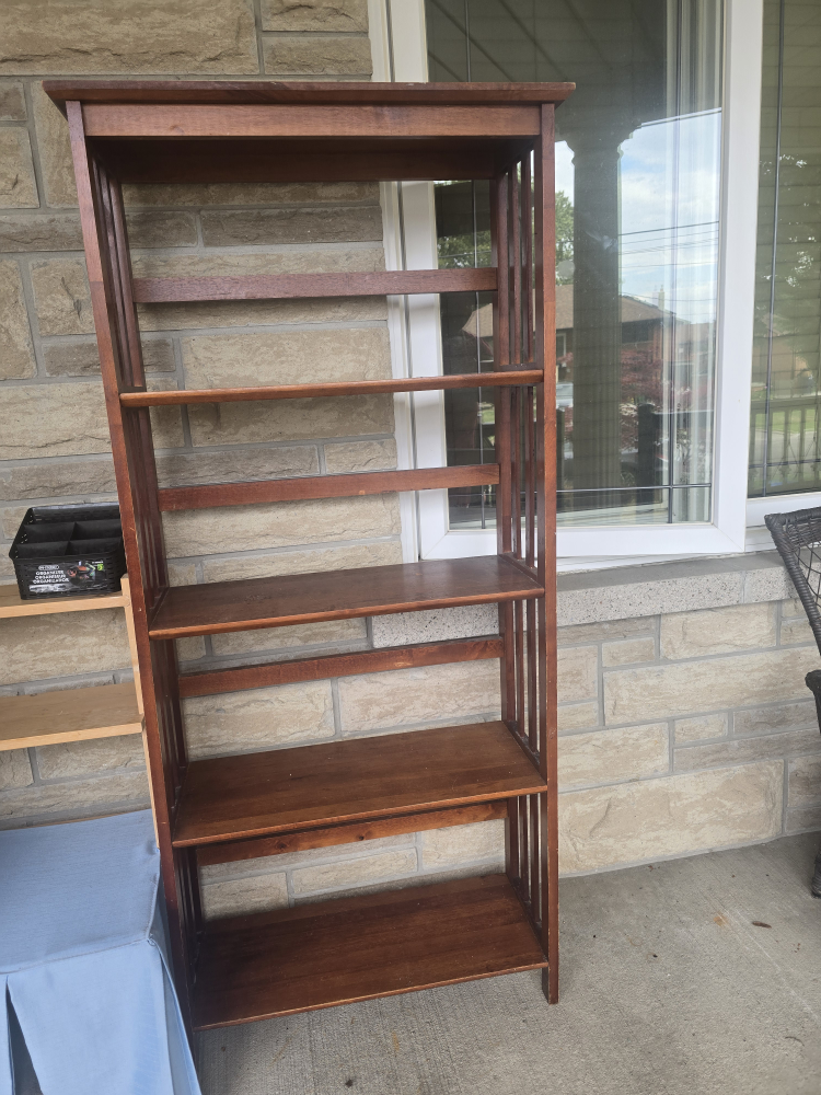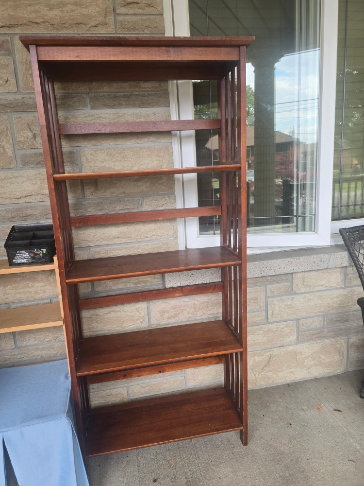 Selling a wooden bookcase. It's in good condition and ready for a new home! Perfect for storing books, displaying items, or organizing your space