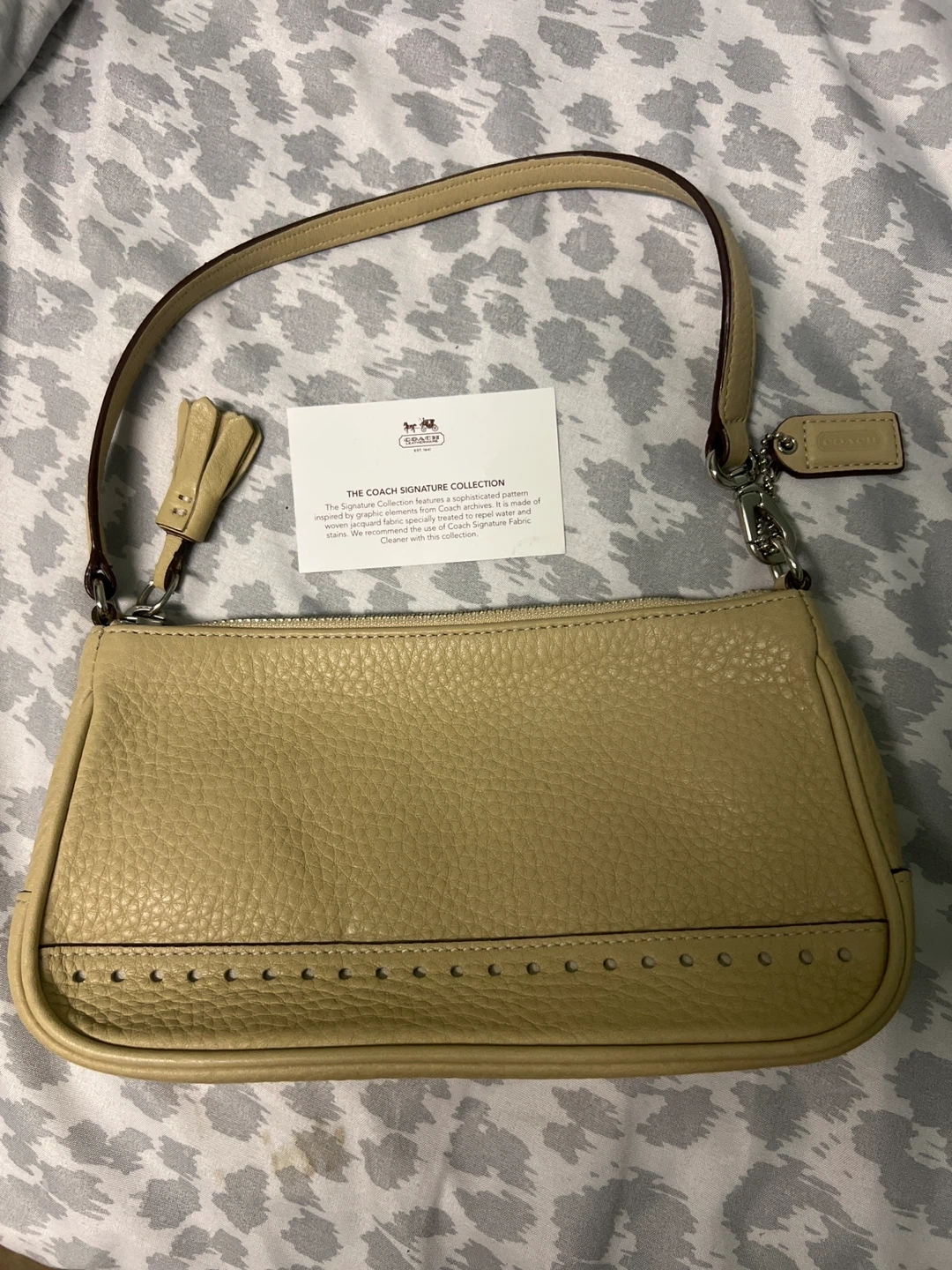 Selling a lovely Coach Signature Collection bag in beige leather! It's in excellent condition and ready for a new home. Perfect for adding a touch of classic style to any outfit