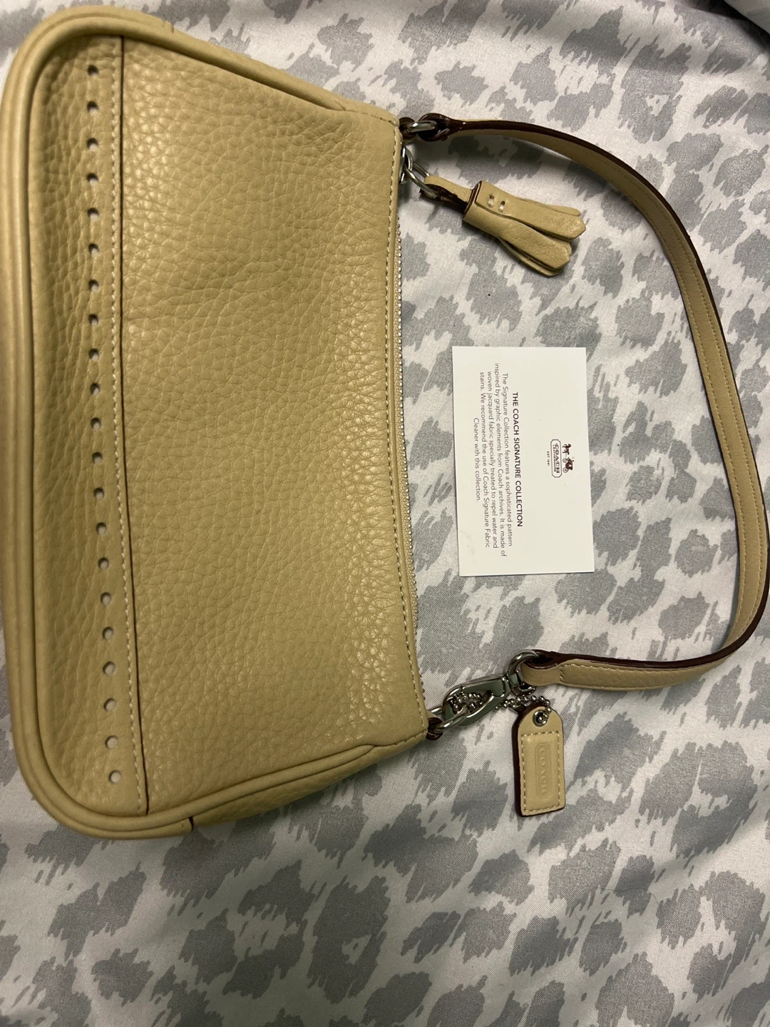 Selling a lovely Coach Signature Collection bag in beige leather! It's in excellent condition and ready for a new home. Perfect for adding a touch of classic style to any outfit