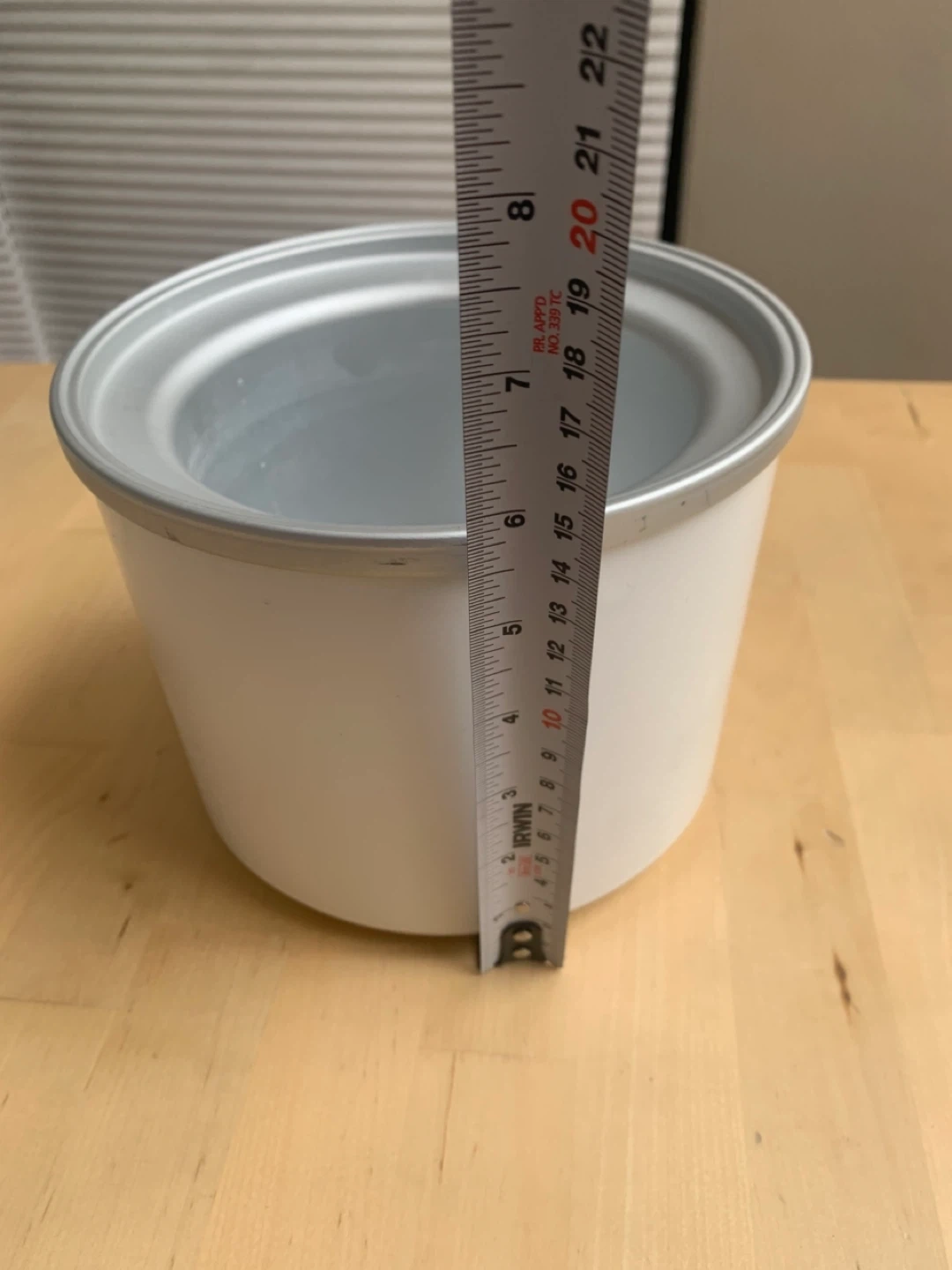 I'm selling an ice cream maker bowl. The diameter is about 7 inches and the height is about 8 inches. It's in great condition and ready for your next batch of homemade ice cream!