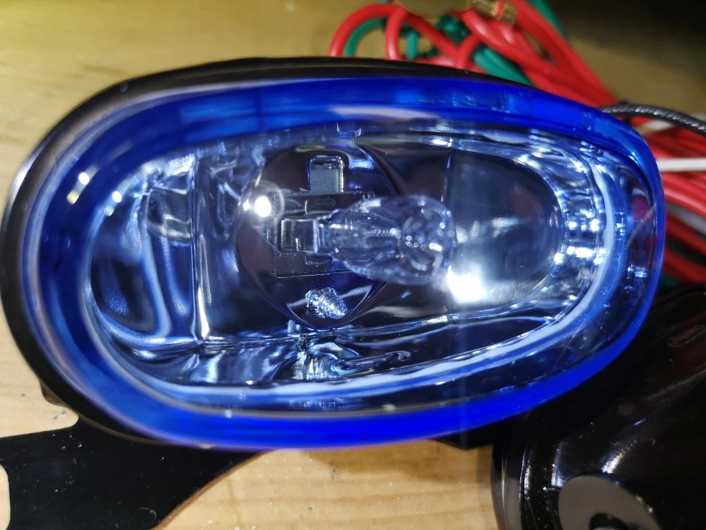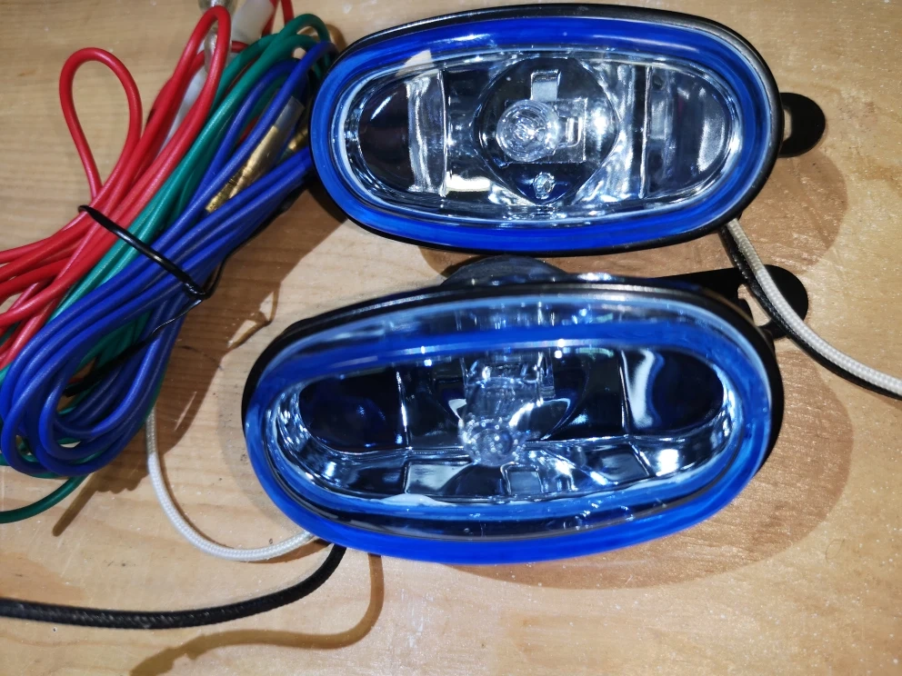 - 2x fog light housing w blue lenses.