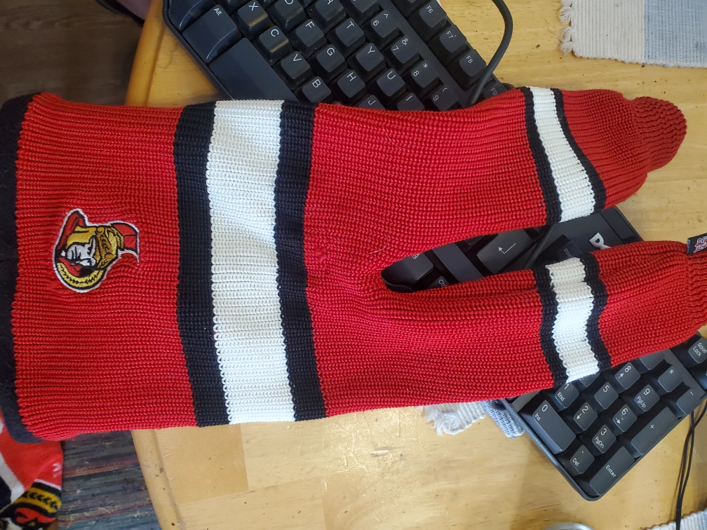 Selling a Ottawa Senators Hockey Sockey socks! They're in great condition and feature the team logo and colours. Perfect for any Sens fan! it is a touqe