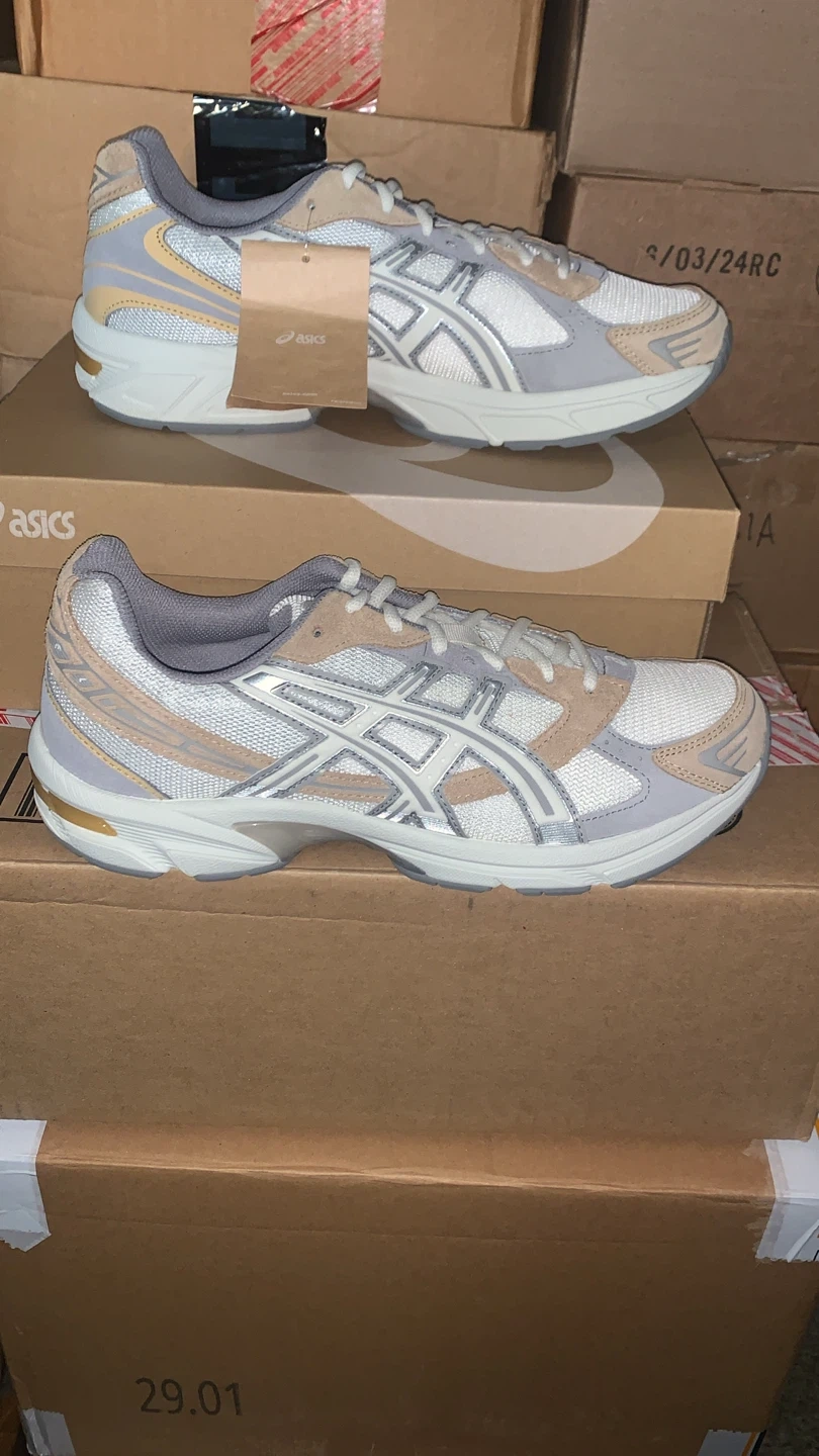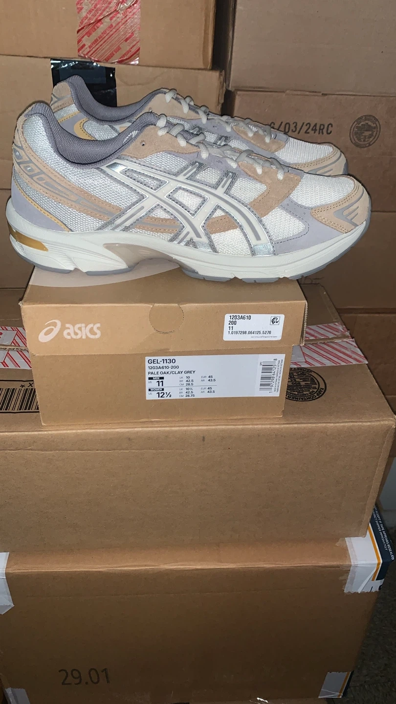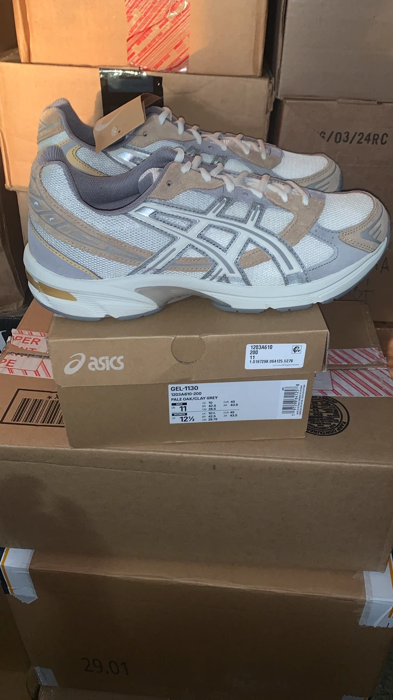 Selling a pair of Asics Gel-1130 sneakers in a cream and grey colorway. They are brand new and come with the original box! Available in size 11 and 12