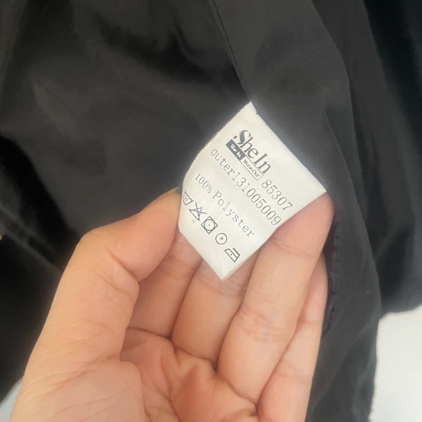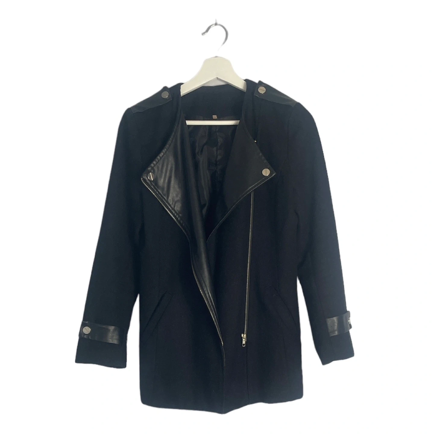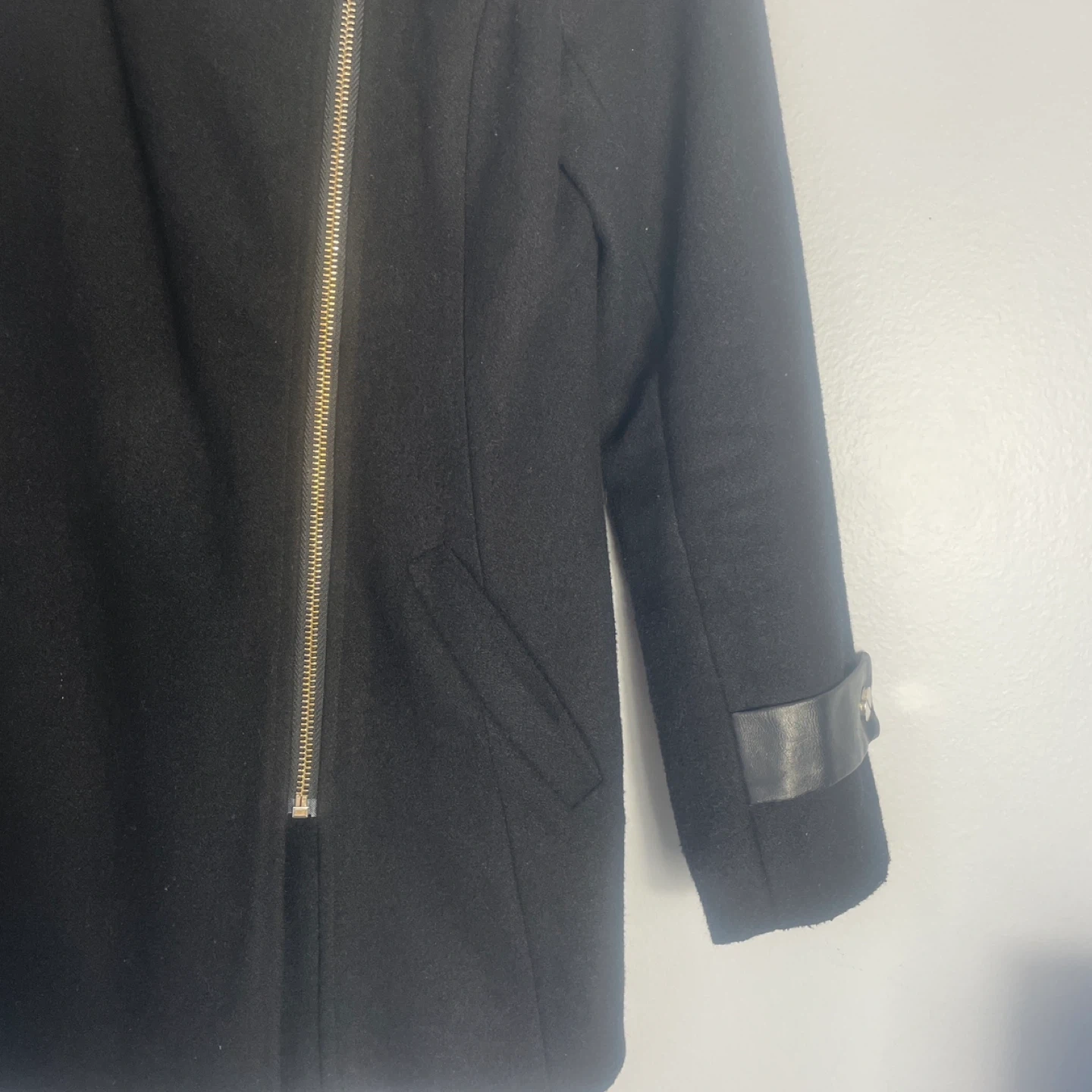 SHEIN Black Leather Trims Oblique Zipper Coat Size Small