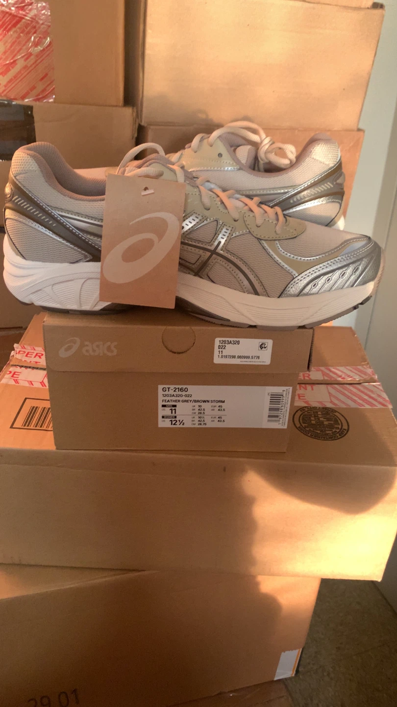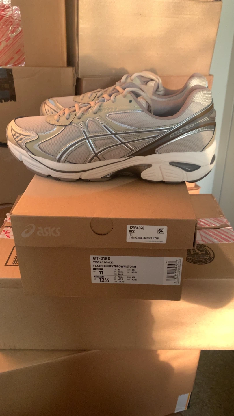 Selling a pair of Asics GT-2160 sneakers in the Feather Grey/Brown Storm colorway, size 11. These come with the original box. They are in great condition and ready for a new home!