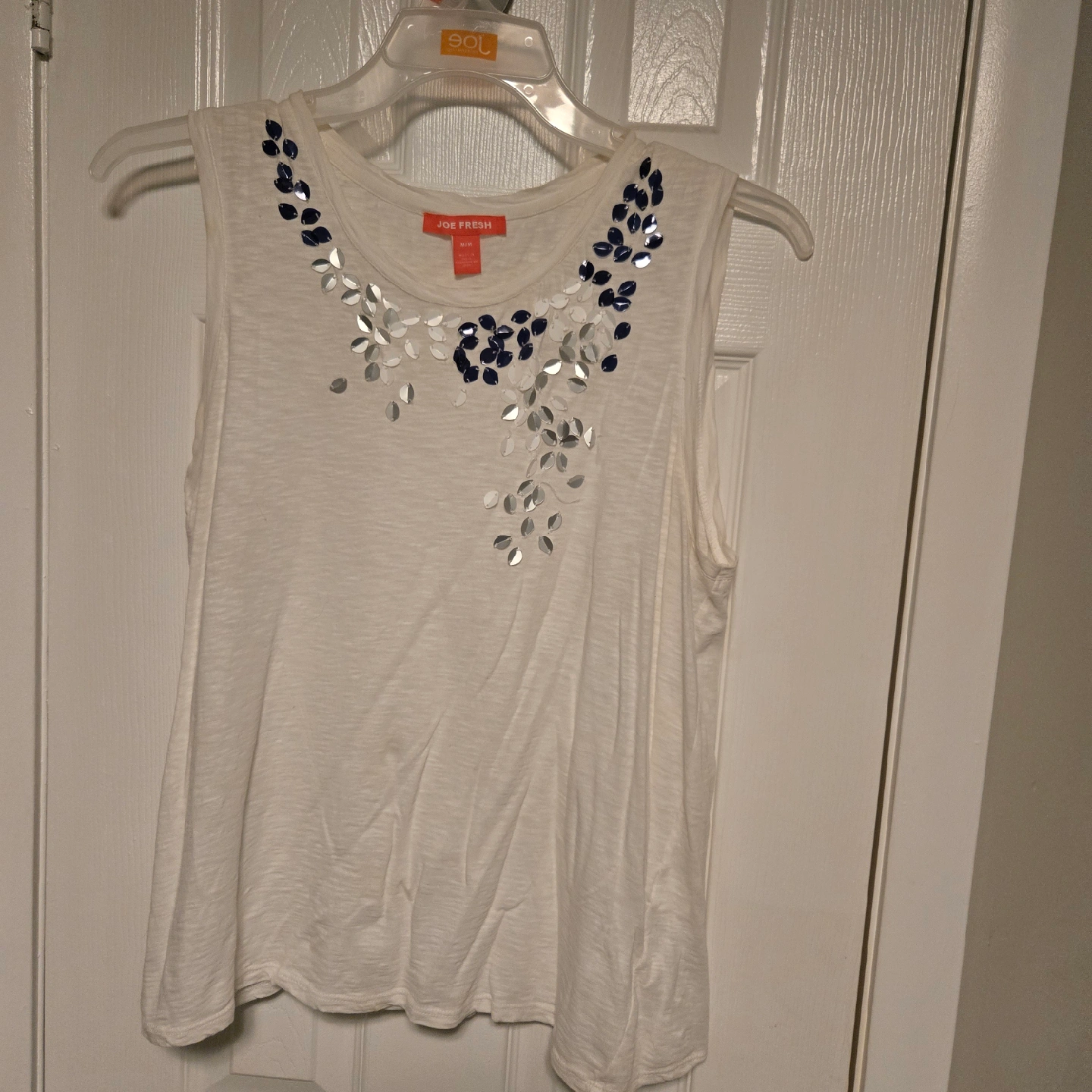 Cute Joe Fresh white tank top with a fun sequin design! It's a size medium and in great condition.