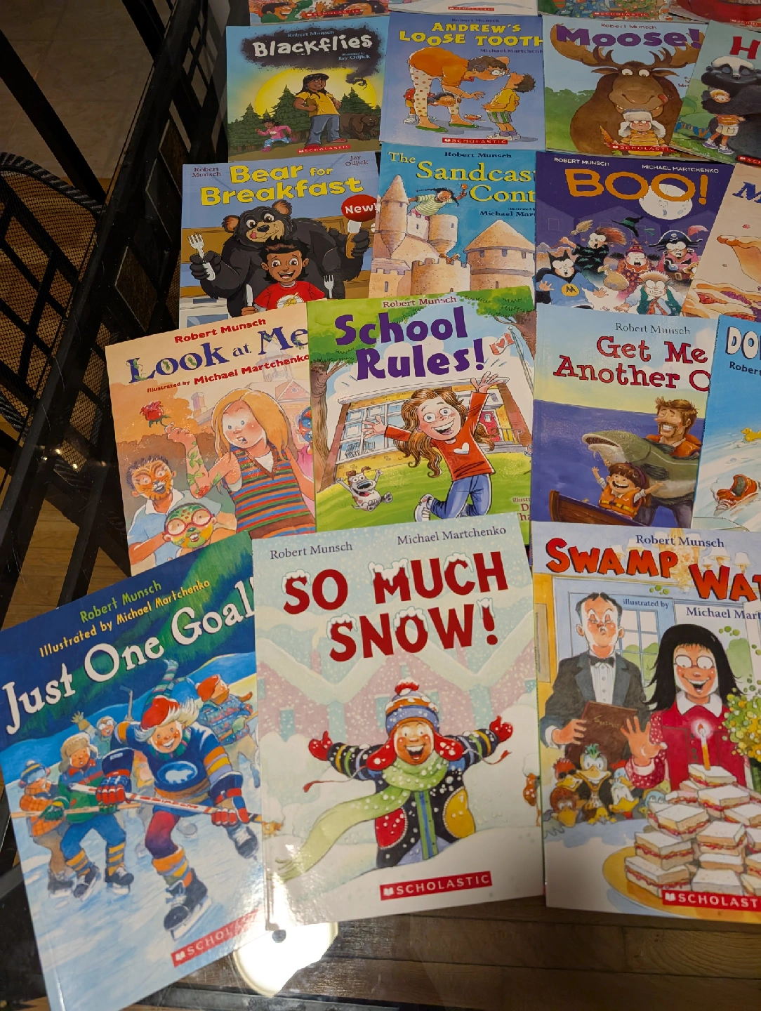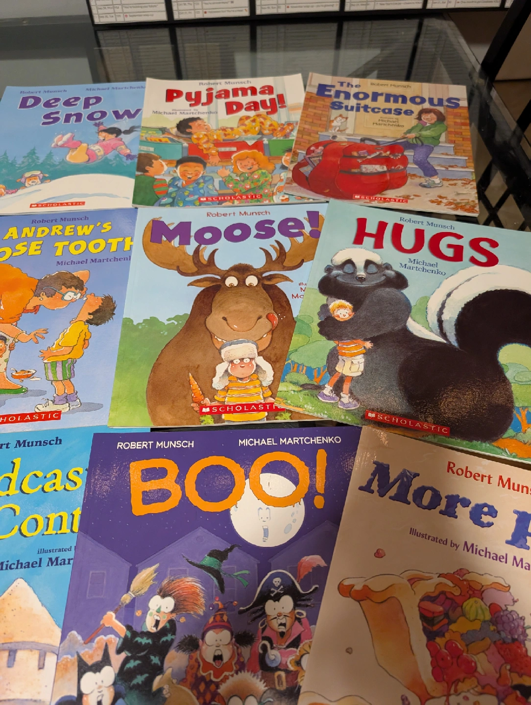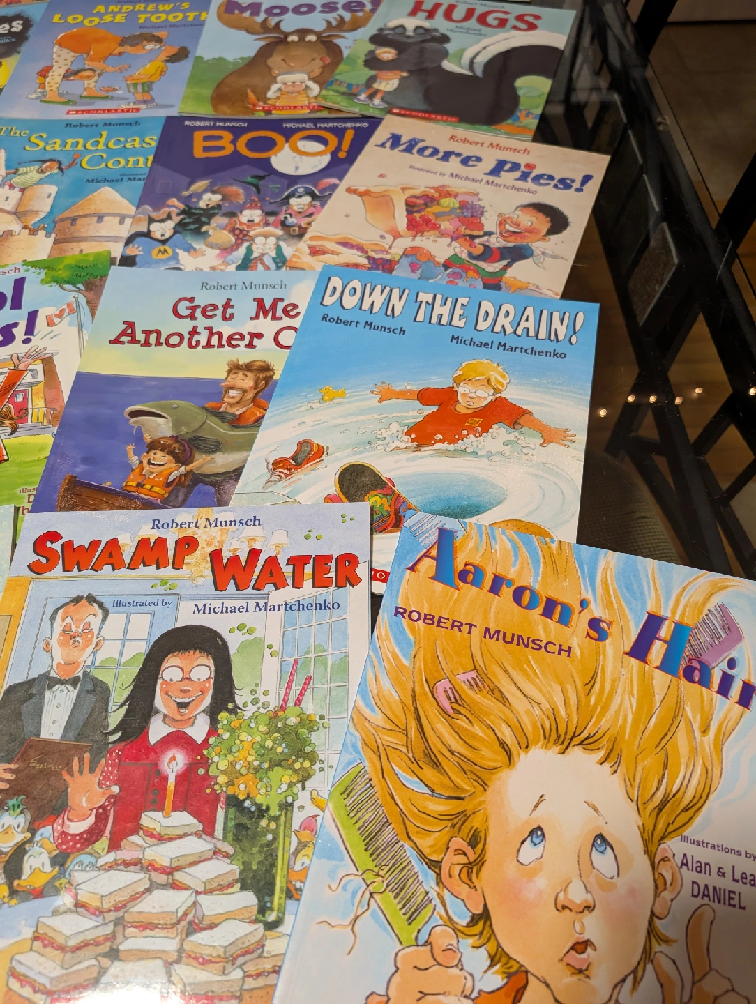 112Selling a collection of Robert Munsch books! Great for kids of all ages who love a good laugh. Titles include: - Class Clown - Deep Snow - Pyjama Day! - The Enormous Suitcase - Blackflies - Andrew's Loose Tooth - Moose! - Hugs - Bear for Breakfast - The Sandcastle Contest - Boo! - More Pies! - Look at Me! - School Rules! - Get Me Another One! - Down the Drain! - Just One Goal! - So Much Snow! - Swamp Water - Aaron's Hair Paid retail price for each book $7.99. Some. Are brand new, rest are new like condition!