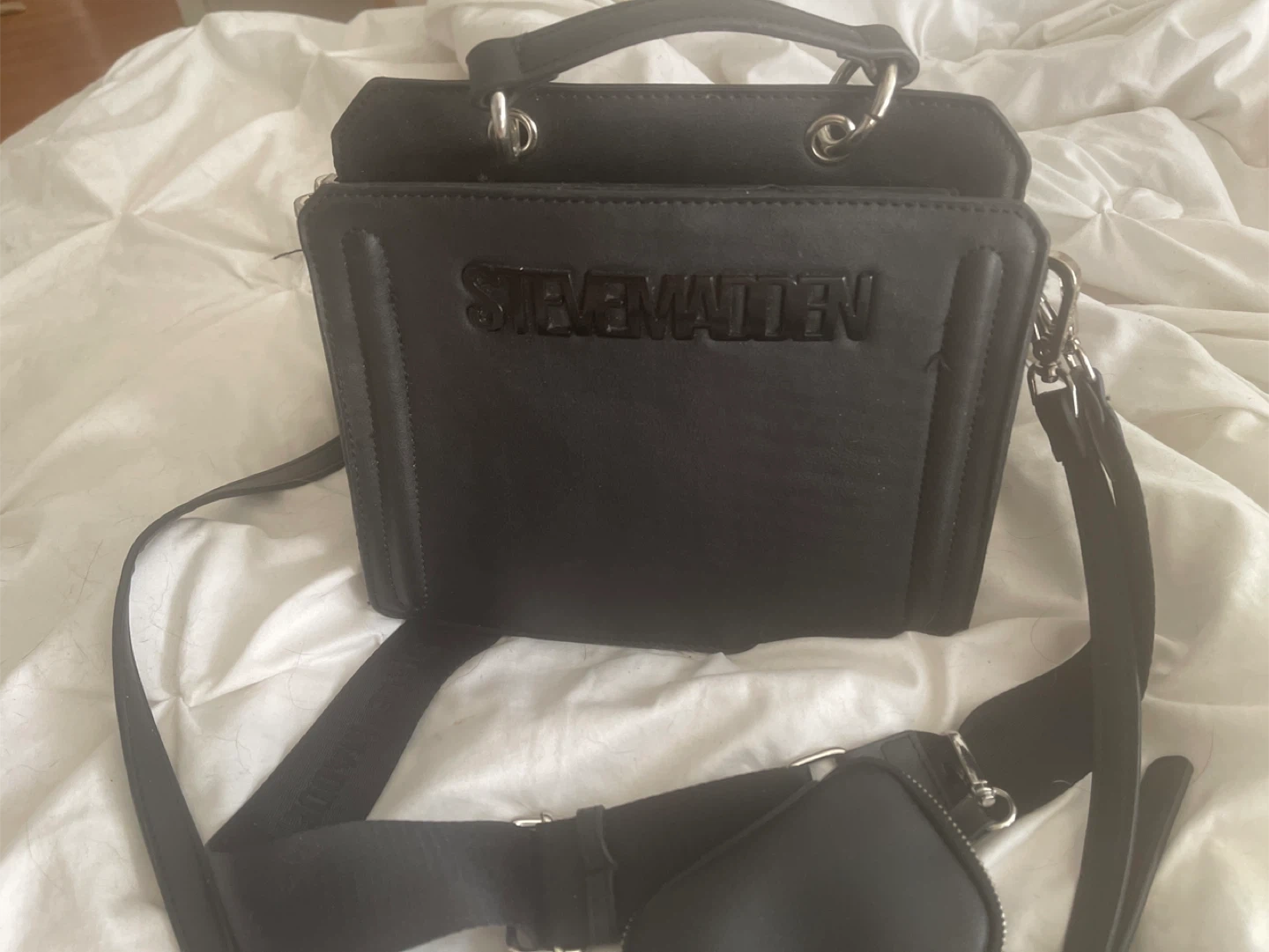 Selling a stylish Steve Madden crossbody bag in black! It's in great condition and perfect for everyday use. It features a detachable crossbody strap and a top handle for versatile carrying options. The bag also comes with a small coin purse attached to the strap. This is a great addition to your wardrobe!