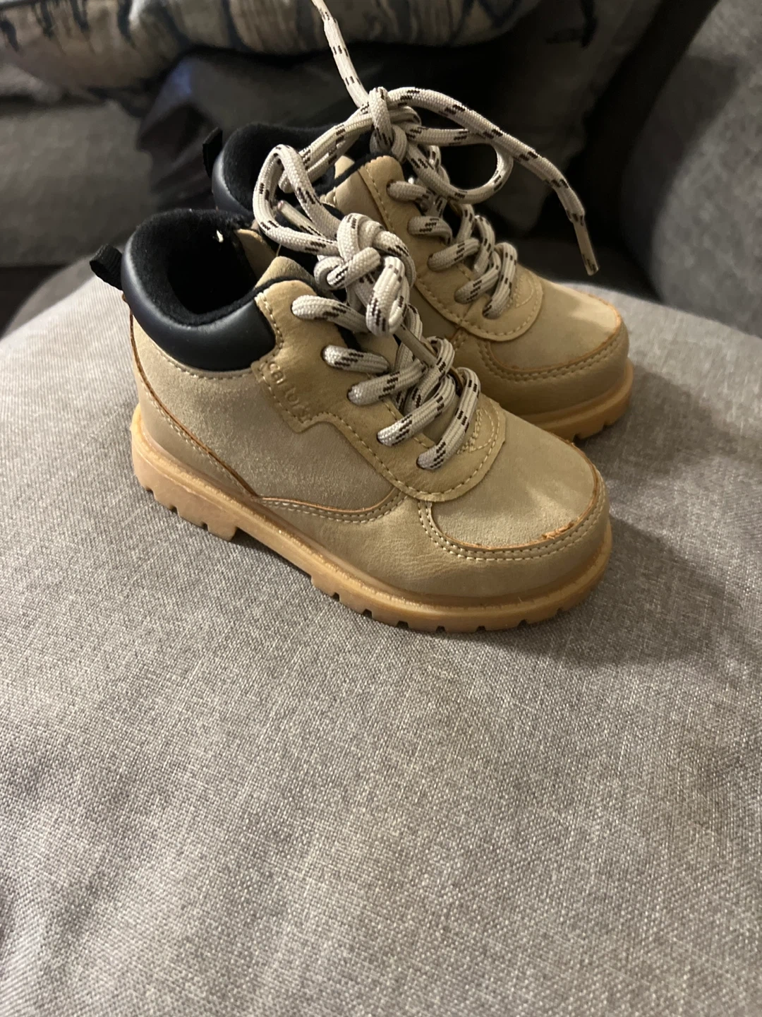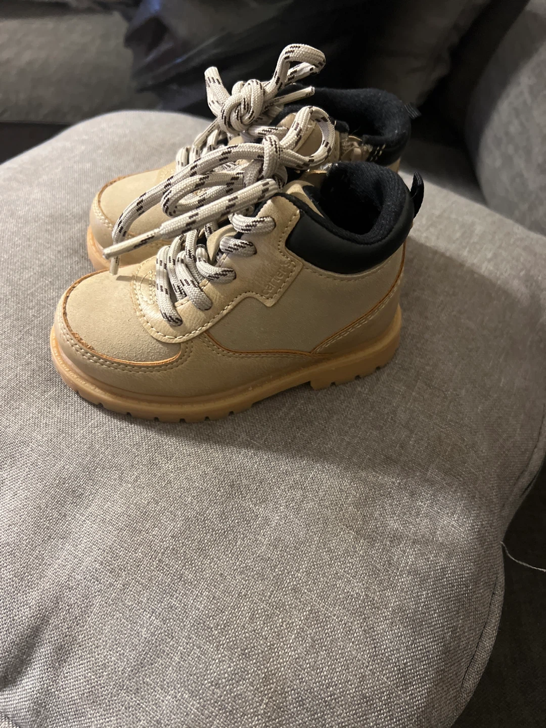Size 7 Never worn These toddler boots are in great condition and ready for a new home! They feature a lace-up design and a tan color, perfect for any outfit.