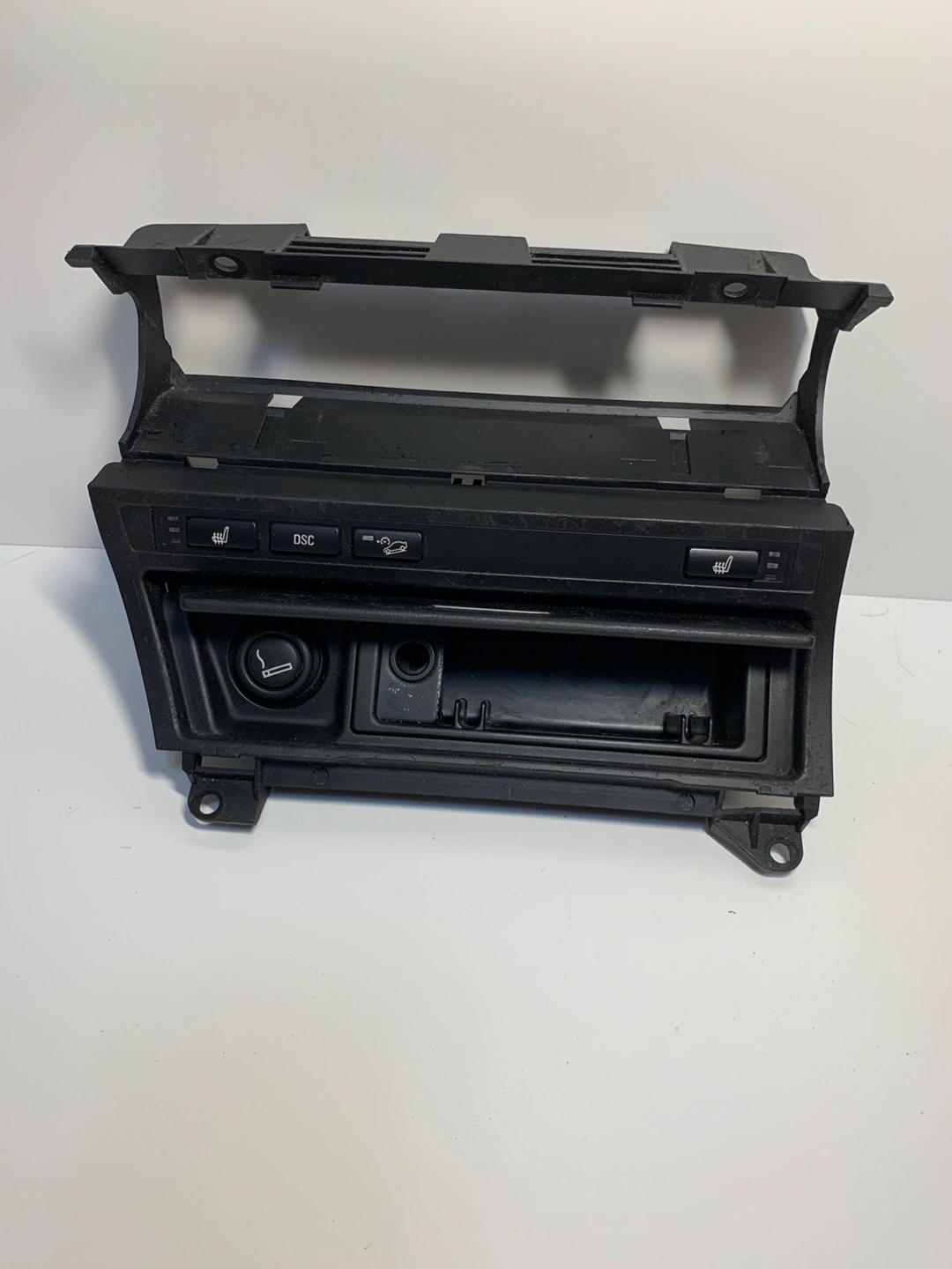 I am selling a center console from a E46 BMW 325, ashtray with a functioning cigarette lighter and heated seat ,downhill decent control, and dynamic stability control buttons.