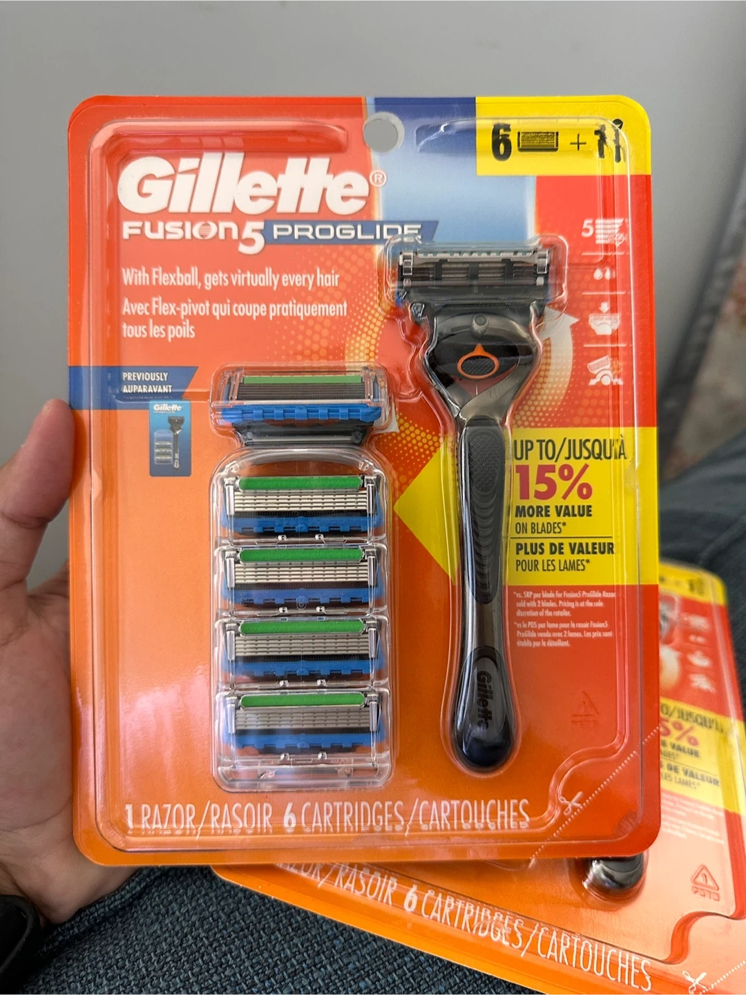 Gillette Fusion5 ProGlide razor with FlexBall technology, giving you virtually every hair! Includes 6 cartridges for a longer lasting shave. Up to 15% more value on blades!