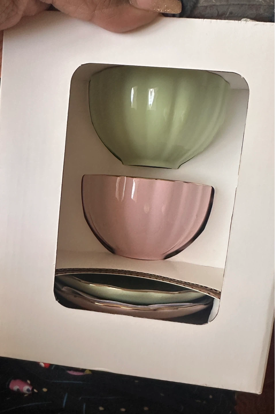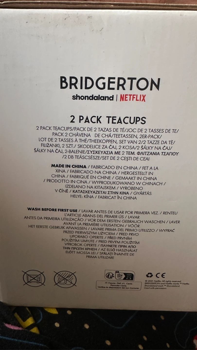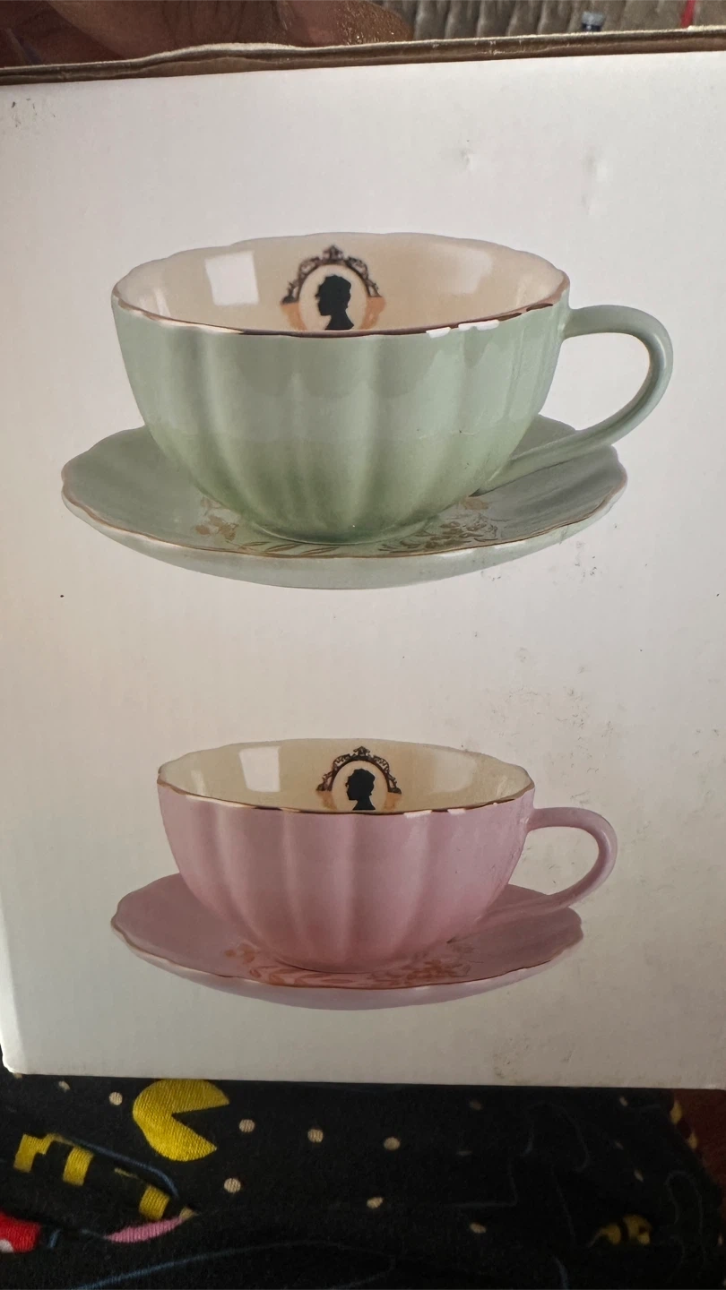 Selling a brand new, in-box Bridgerton teacups set! includes two teacups, one in a lovely pastel green and the other in a charming pastel pink. Perfect for tea time with a touch of Regency era flair! Price firm.