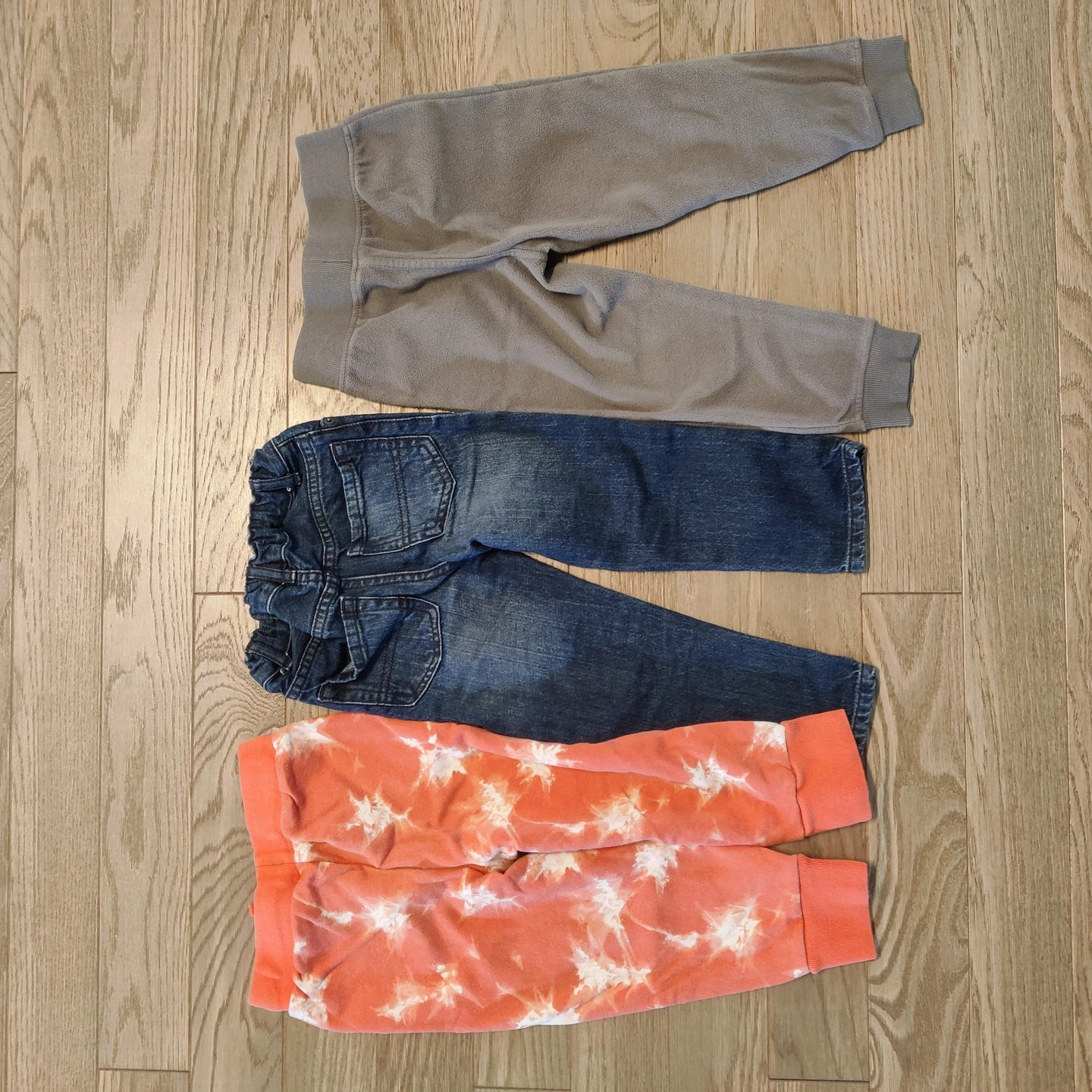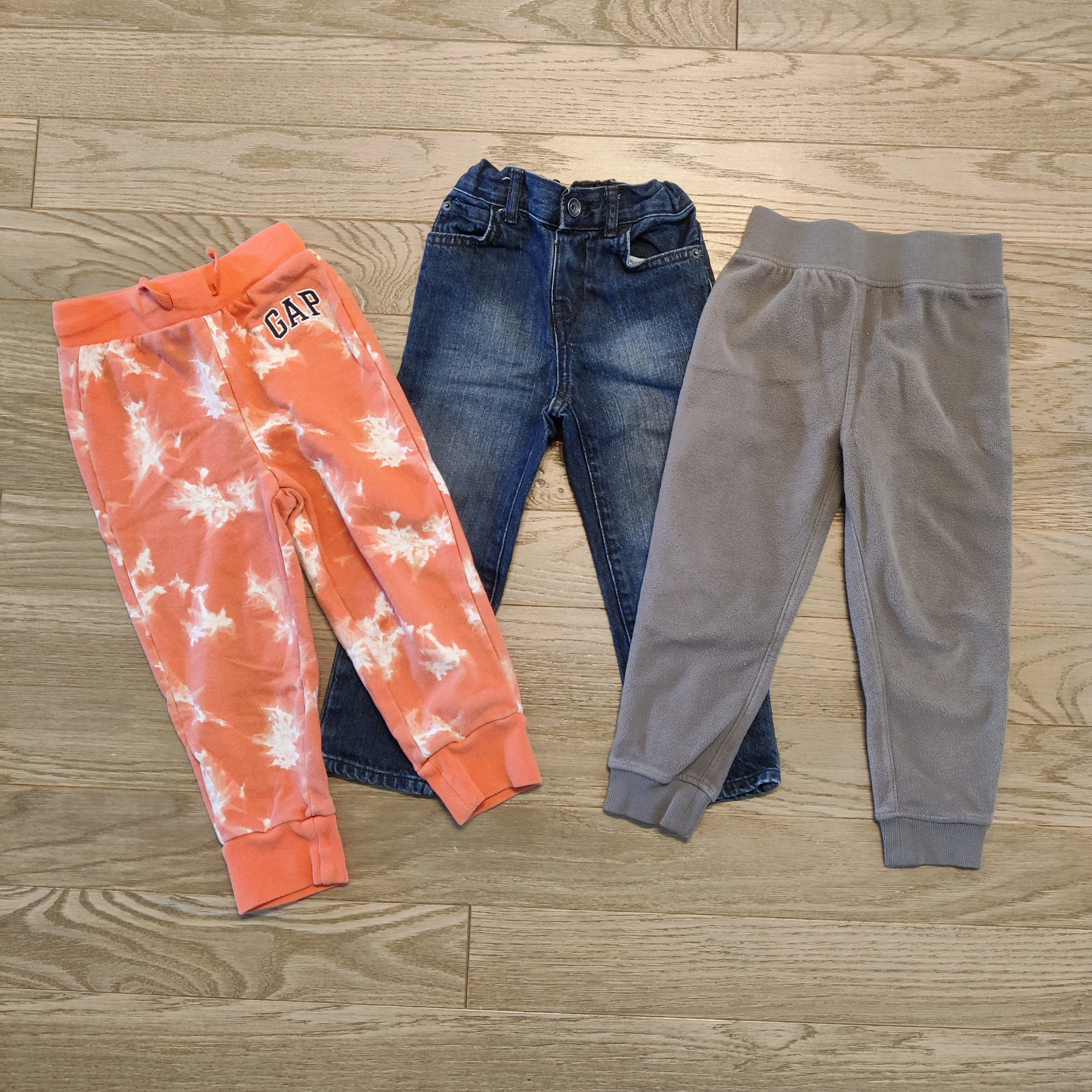 Set of three sweatpants for toddlers In good used condition GUC Measurements are approximate and taken laying flat Follow me on Instagram @renewifyupcycle for unique upcycled items