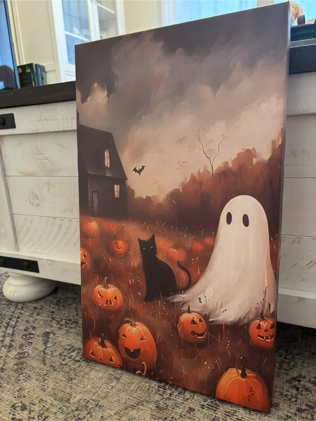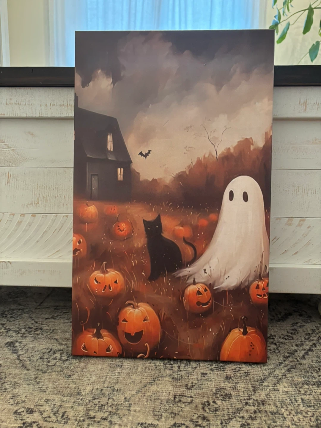 Pumpkin Patch Ghost Canvas Wall Art-Ready To Hang
