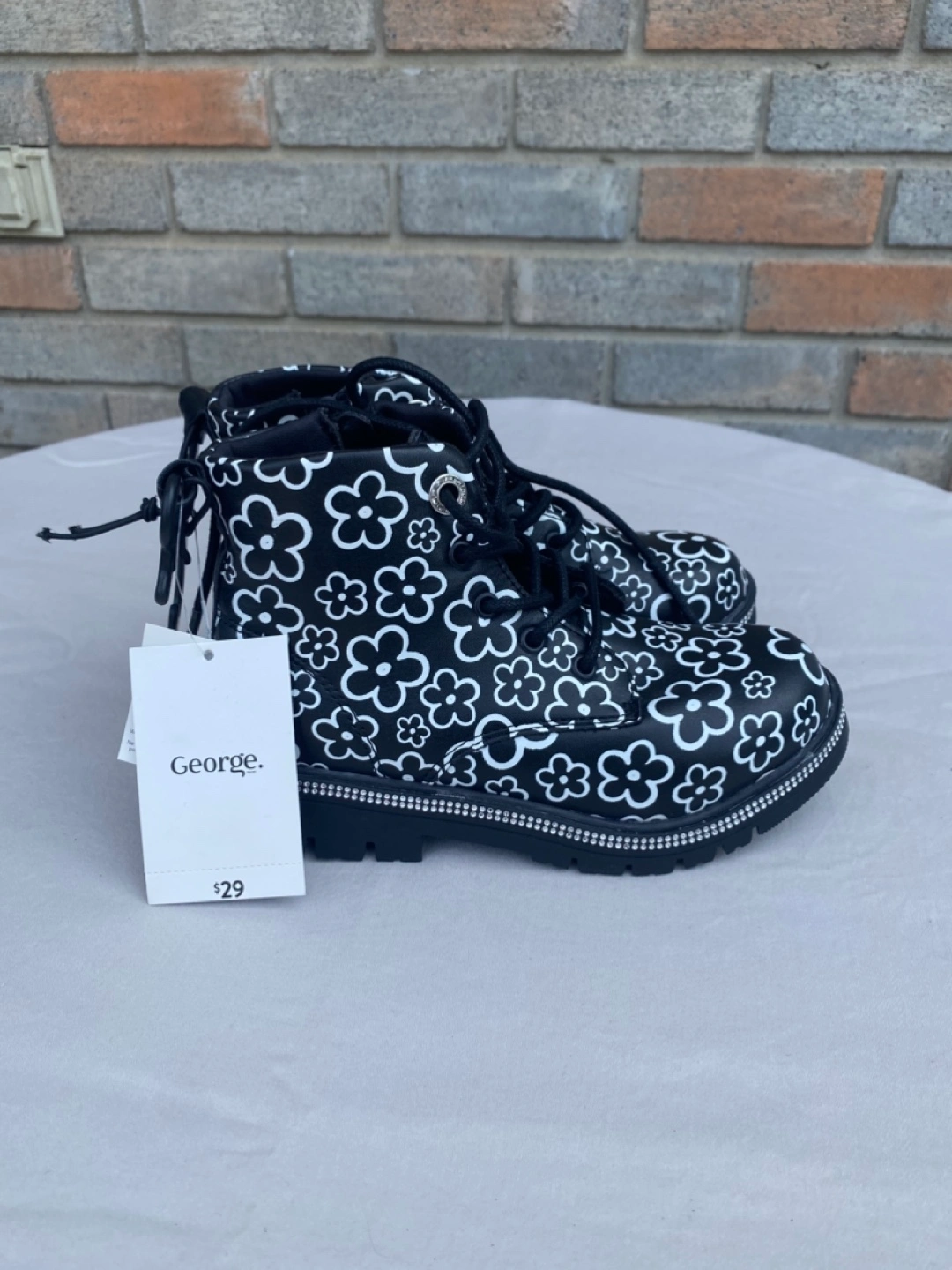 Brand new George boots! These are black with a white floral pattern and lace-up. They're a size 13 kids and have never been worn. Originally bought for $29