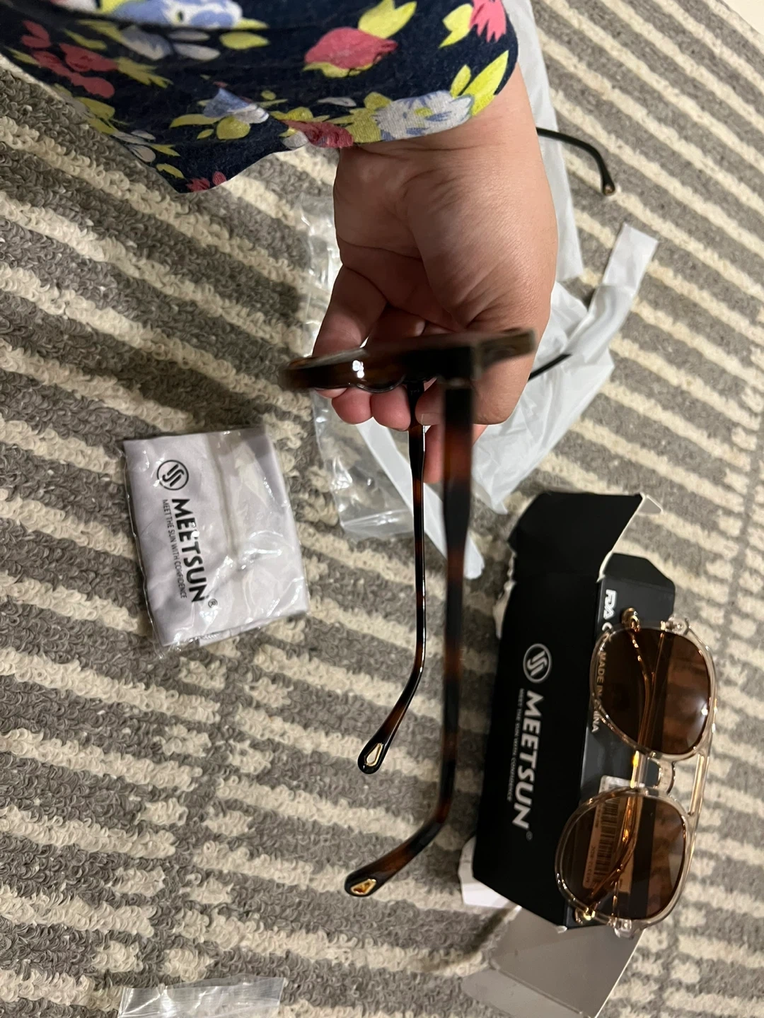Selling a pair of MEETSUN sunglasses! They come with a box and a cleaning cloth. The sunglasses are brand new condition. Price is negotiable and pick up only