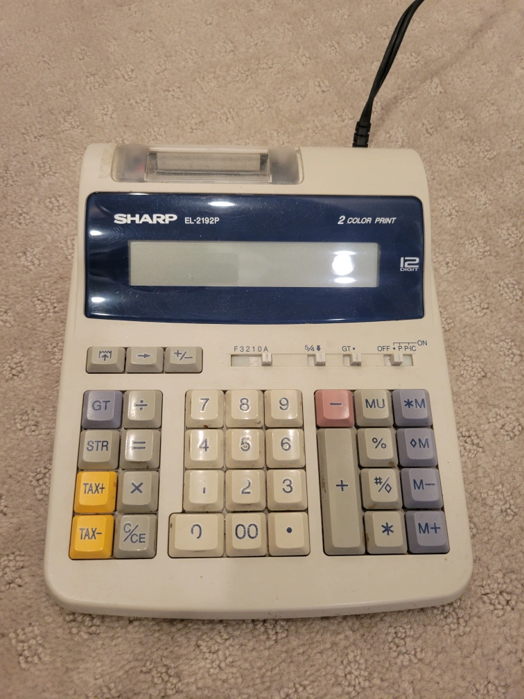 Selling a Sharp EL-2192P calculator. It features 2 colour print and has 12 digits. Great for office or personal use!