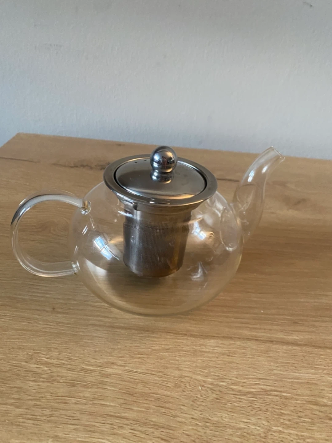 Selling a clear glass teapot that comes with a stainless steel infuser and lid. It's perfect for brewing loose leaf tea. The teapot is in great condition and ready for a new home!