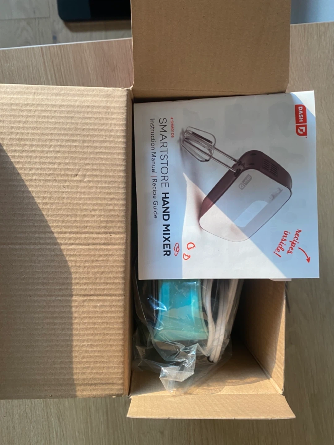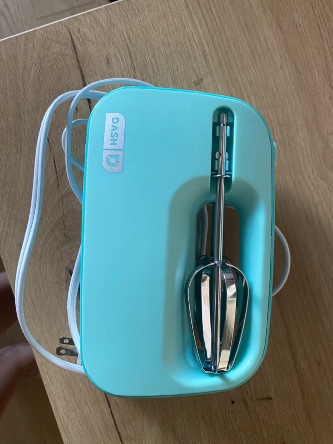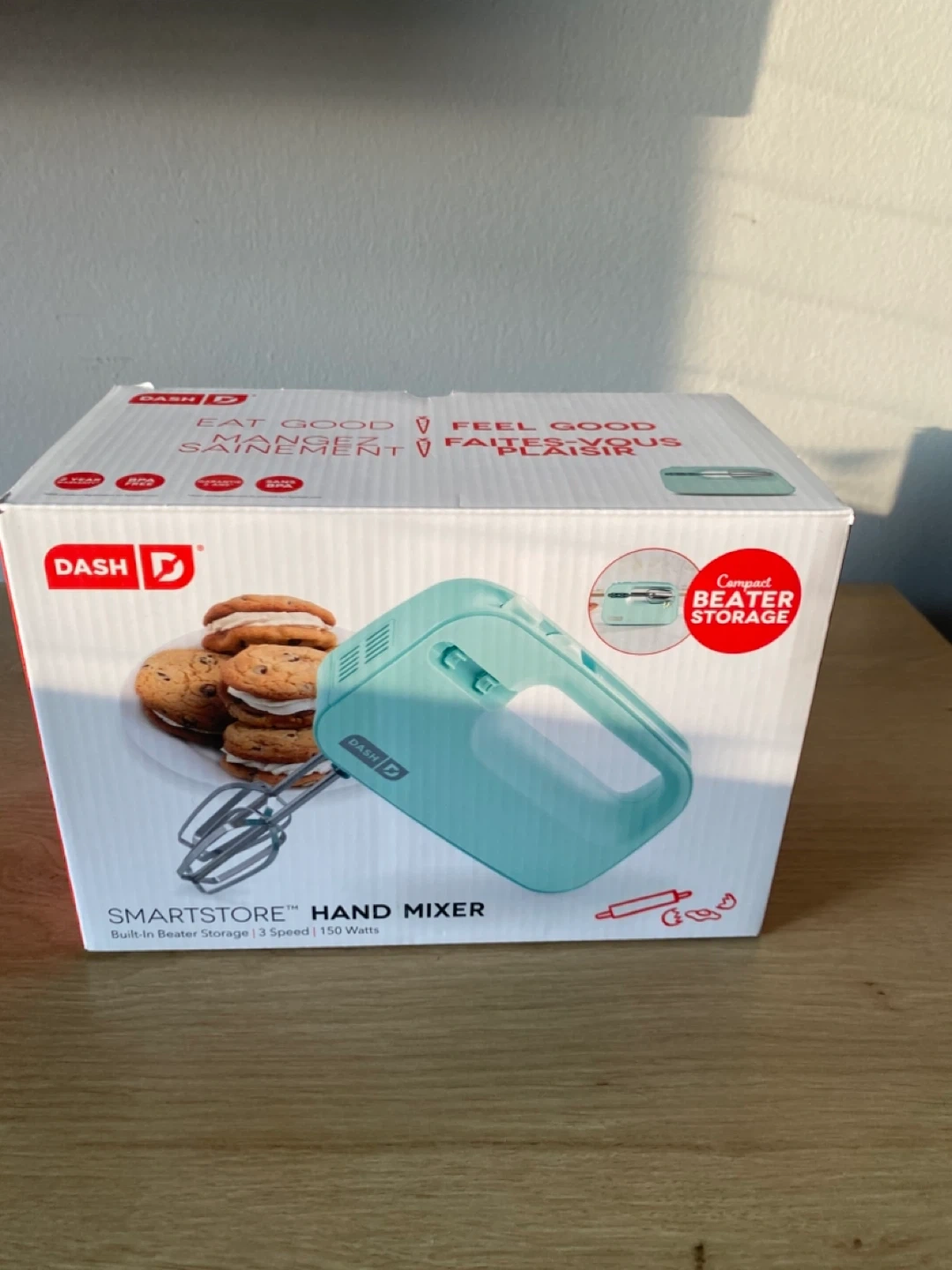 I'm selling a brand new Dash SmartStore Hand Mixer in a lovely teal colour! It comes with its original box and instruction manual. This compact mixer has built-in beater storage and 3 speeds, making it super convenient for all your baking needs. It's 150 Watts and ready to help you whip up something delicious!