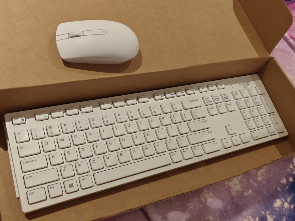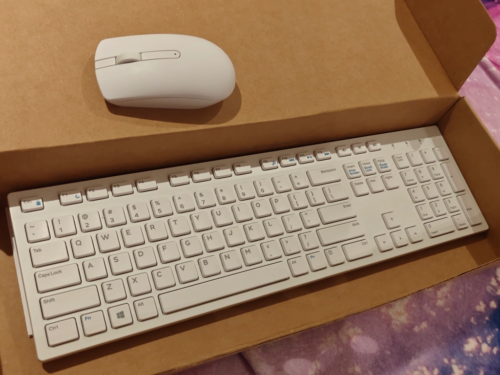 Selling a wireless keyboard and mouse combo in white. It comes in its original box! The keyboard features a standard layout with function keys and a numeric keypad. The mouse is compact and comfortable for everyday use