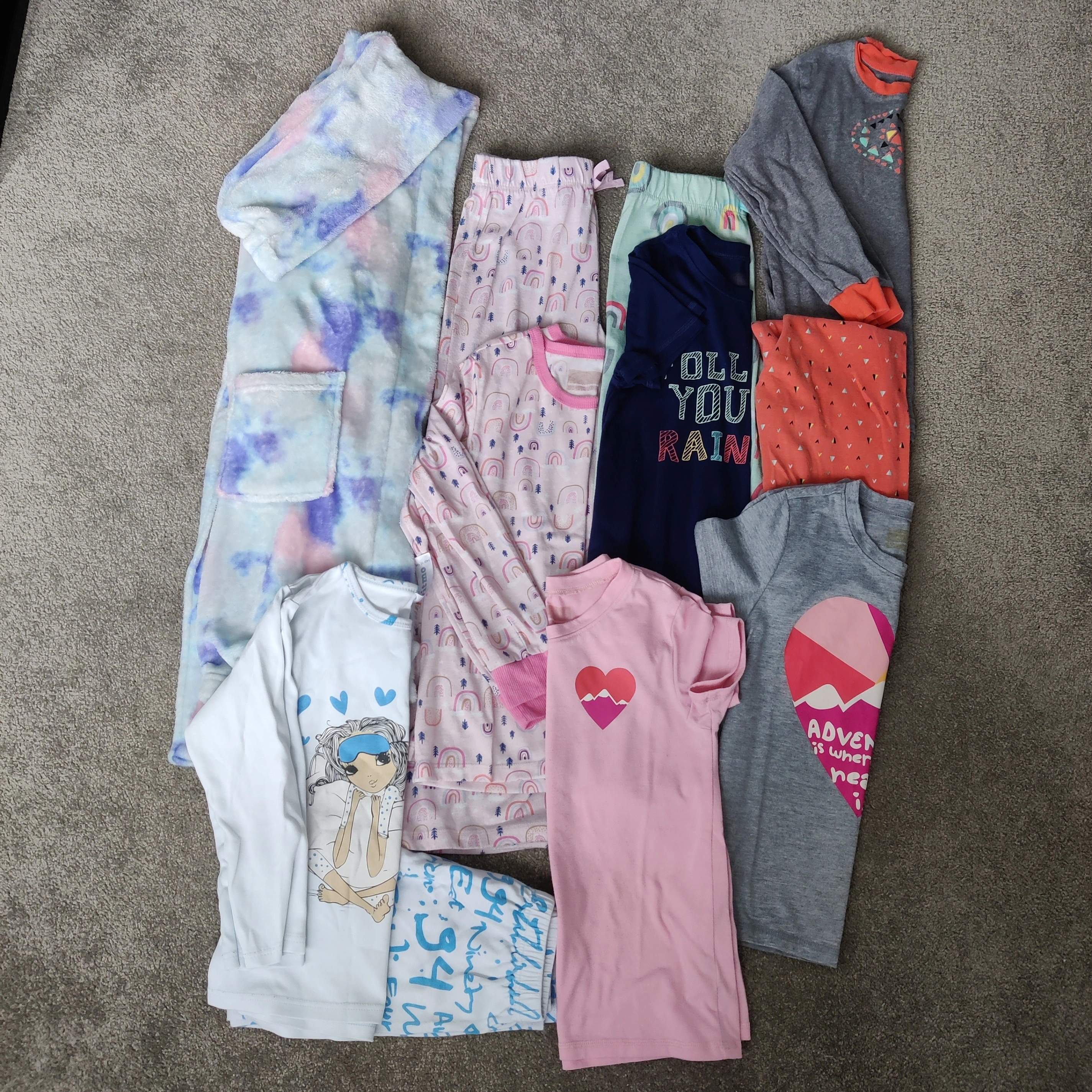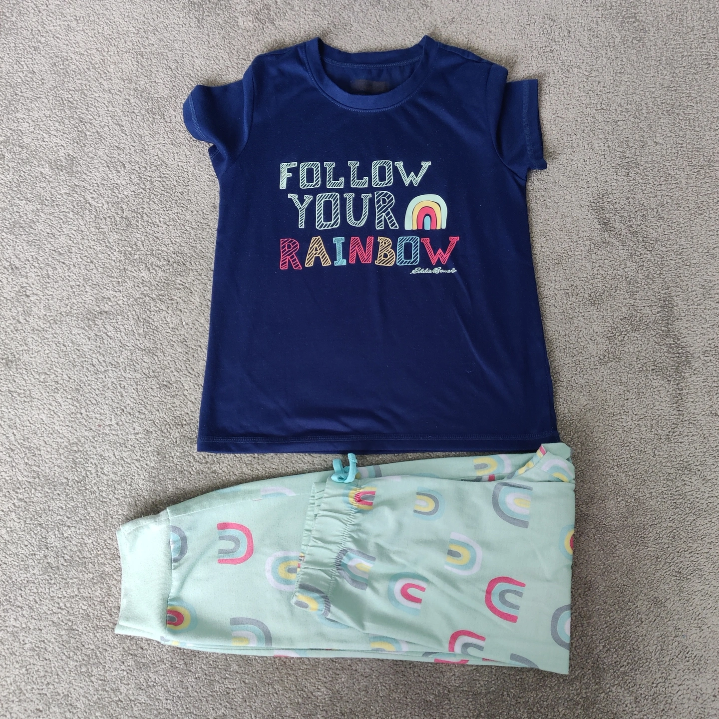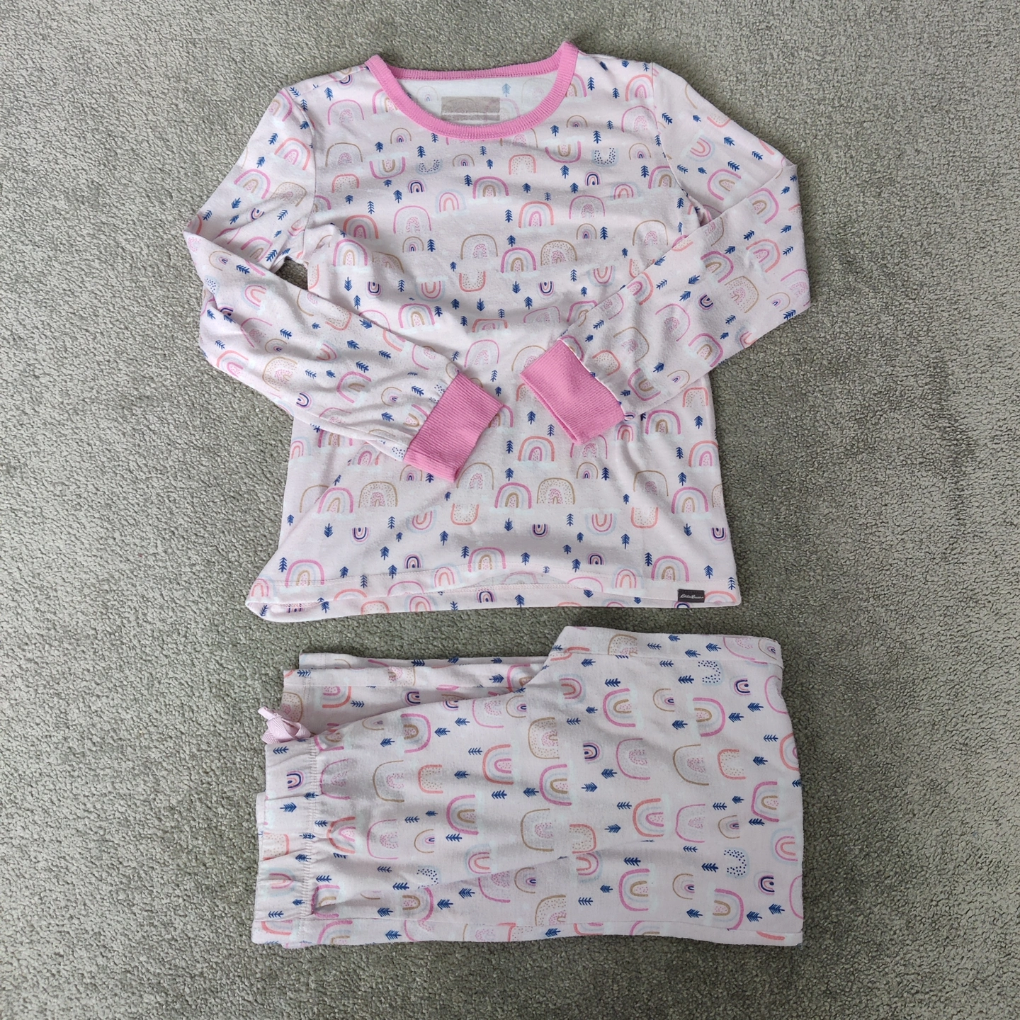 In good used condition GUC Eddie Bauer rainbow pj sets Kirkland pj set pink blue teal navy Wash wear