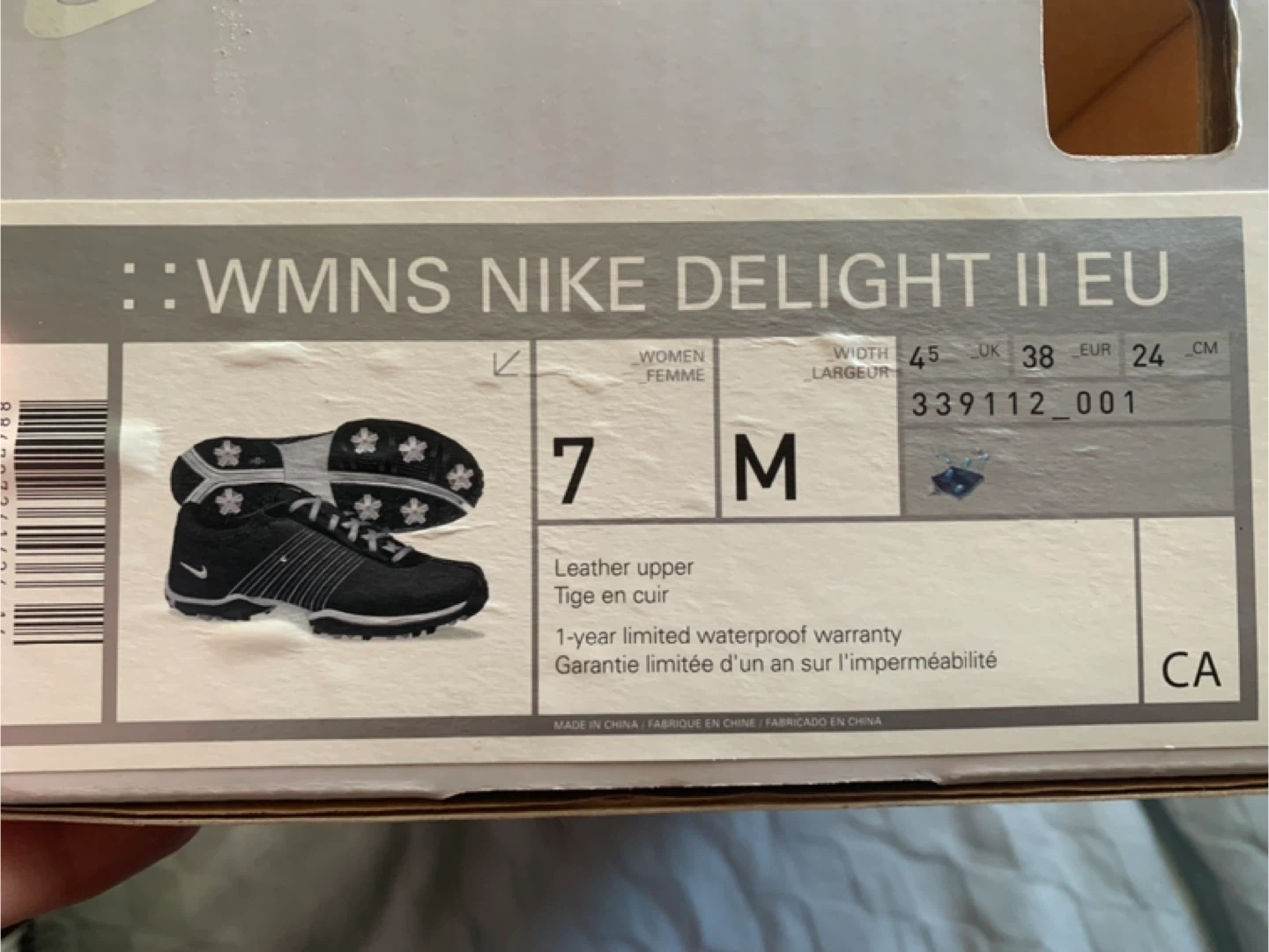 10Selling a pair of Nike Delight II EU women's golf shoes in size 7. They feature a leather upper. Never been worn