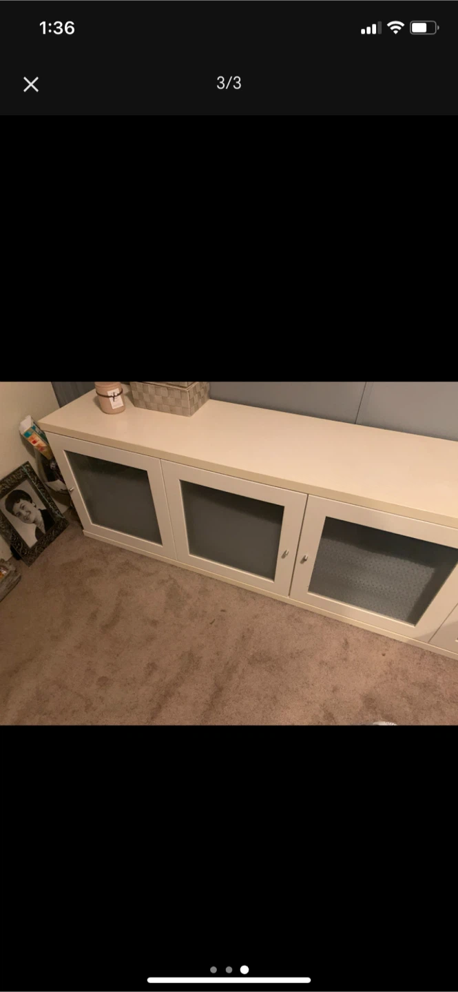 Selling my IKEA Besta TV stand! It's in great condition and perfect for organizing your entertainment area. It has a clean, simple design that fits well with any decor. It's a great piece to keep your living space tidy and stylish