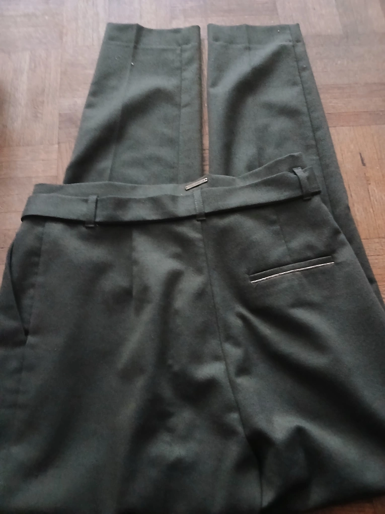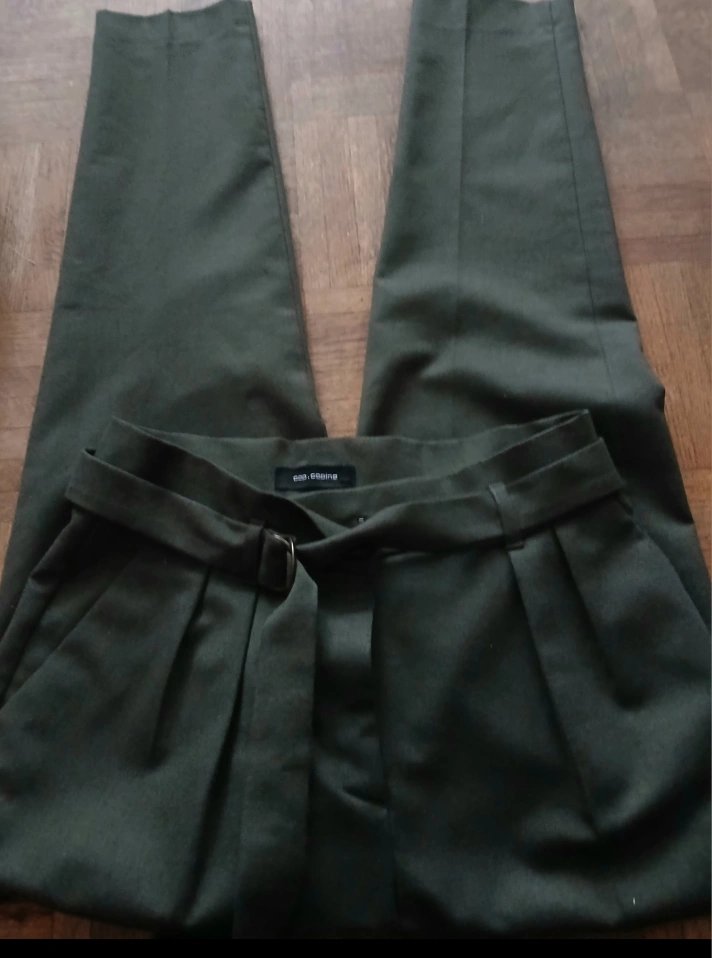 These are a pair of Cop.Copine trousers in olive green. They feature a belted waist and are in good condition. The material appears to be a woven fabric,