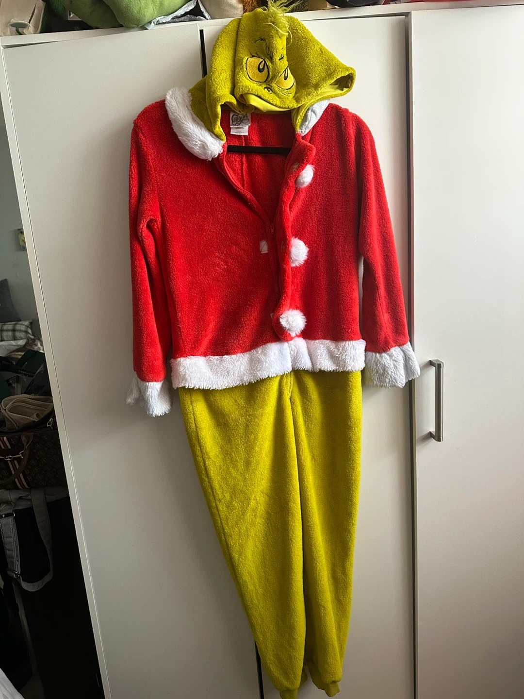 Snuggle up in this cozy Grinch onesie! It's a fun and festive piece, perfect for lounging around the house or adding a touch of whimsy to your wardrobe. The size is L/G (14-16), and it's made of 100% polyester