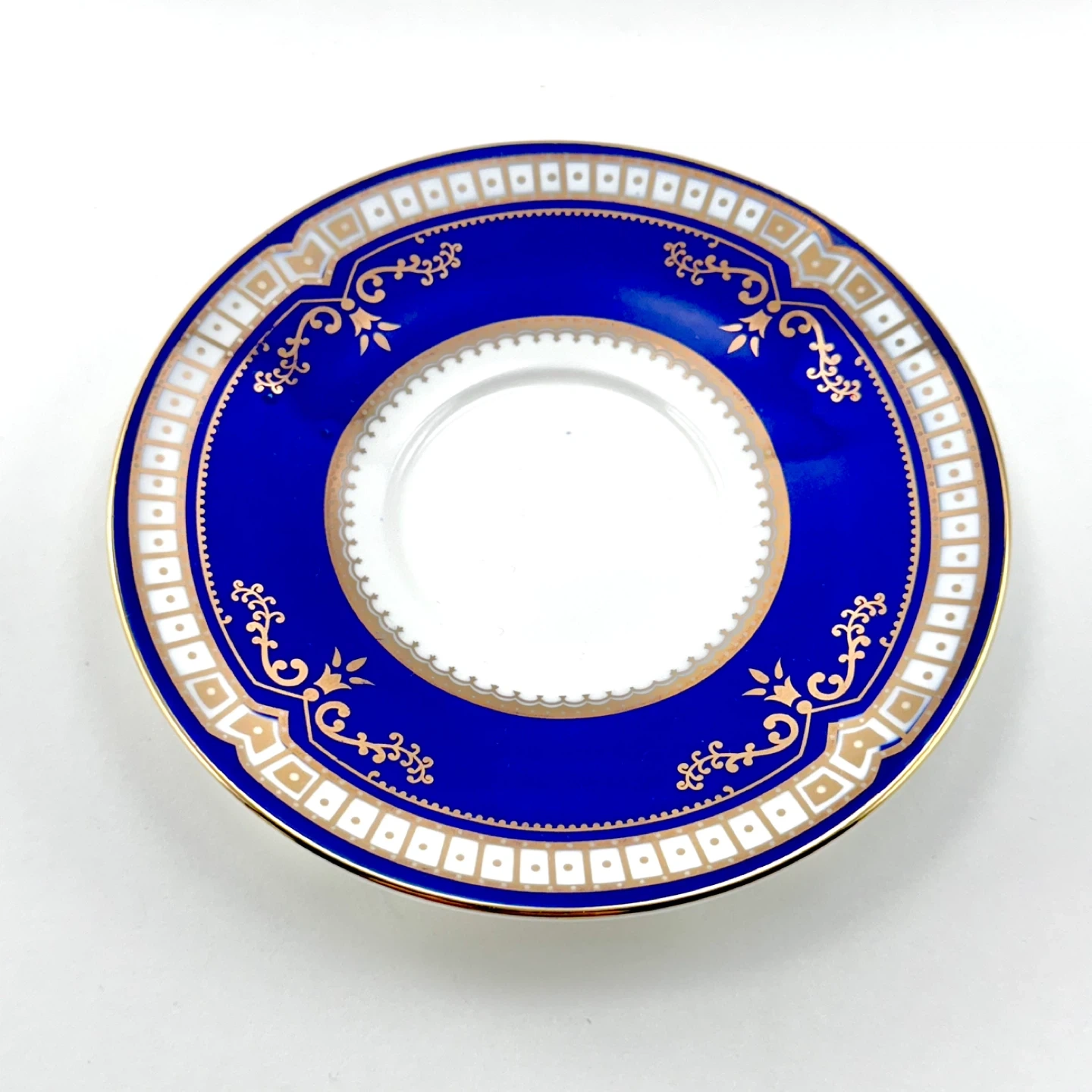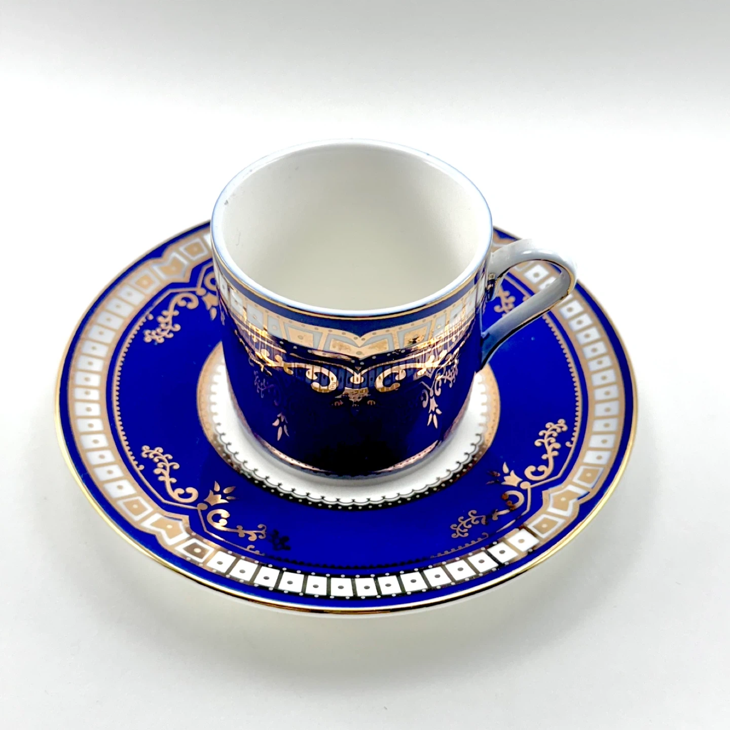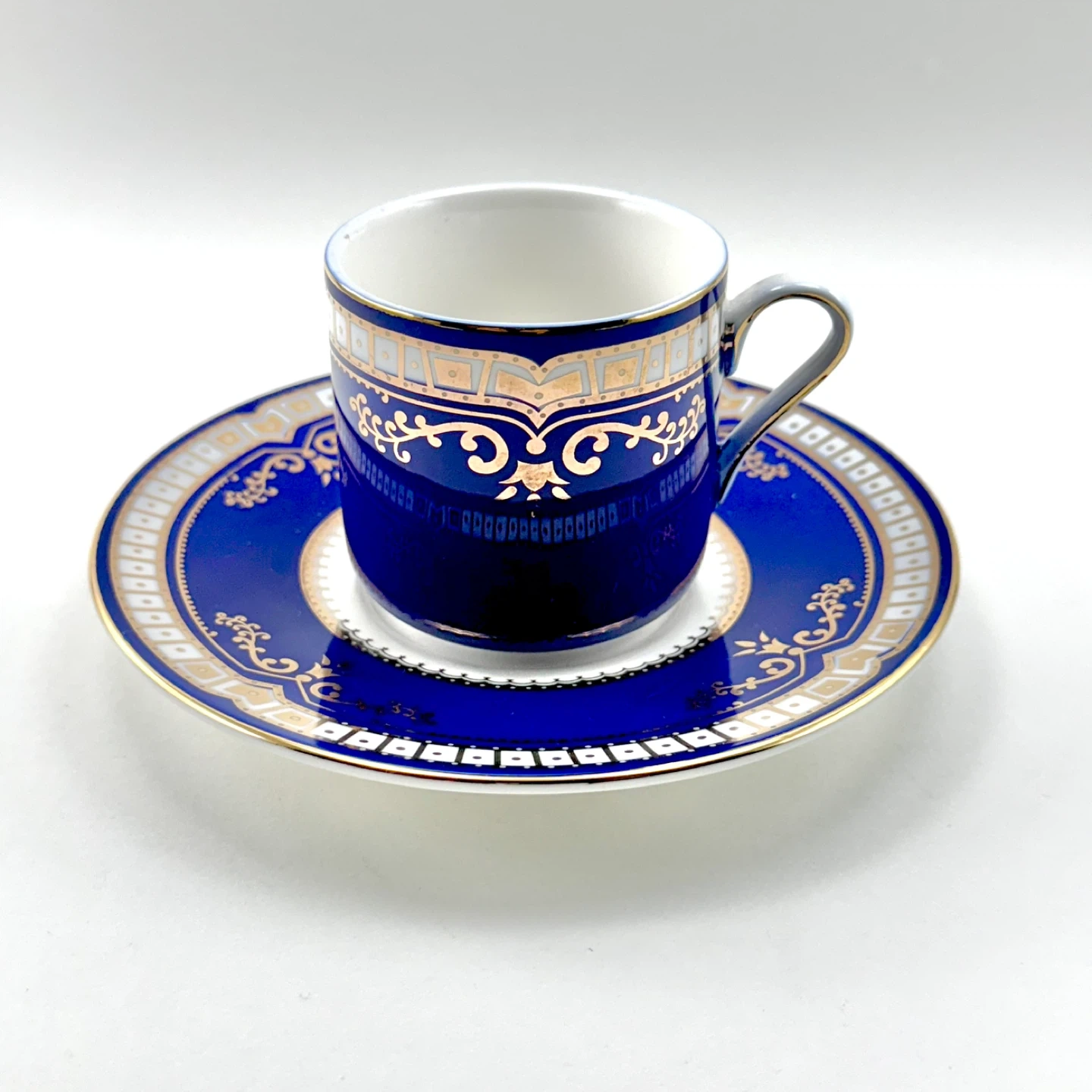 Titanic Exhibit first class Spode pattern cobalt blue replica demitasses (espresso/turkish coffee cup). No chips, cracks, crazing or gold loss