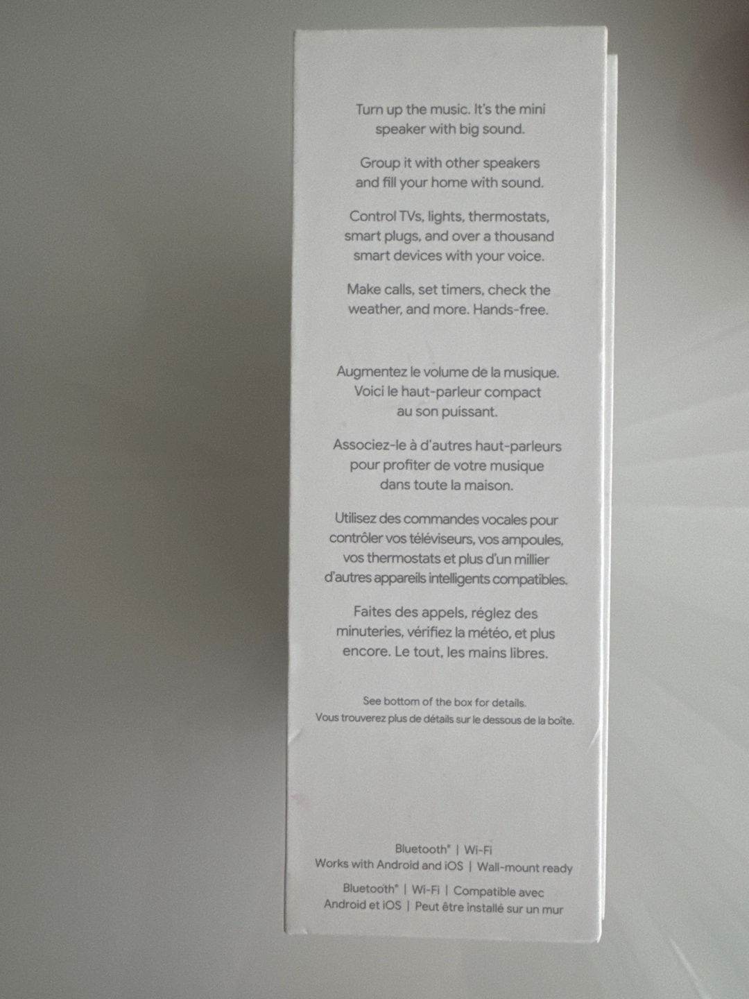 Selling a new, still-in-box Google Nest Mini (2nd generation)! It's a small and mighty speaker that's perfect for any room. You can use it to control your smart devices, play music, make calls, and more. It works with Android and iOS. It's also wall-mount ready. Open to offers.