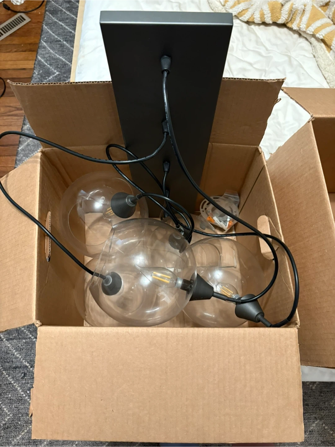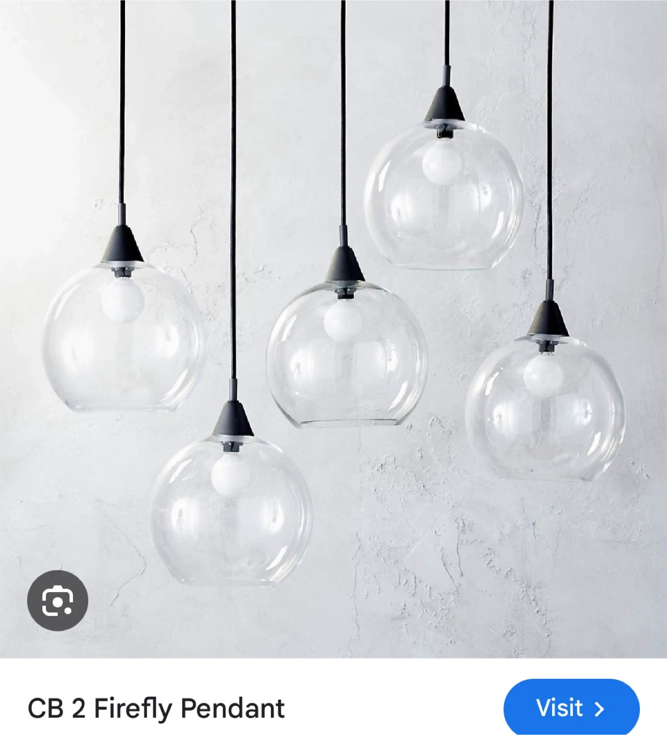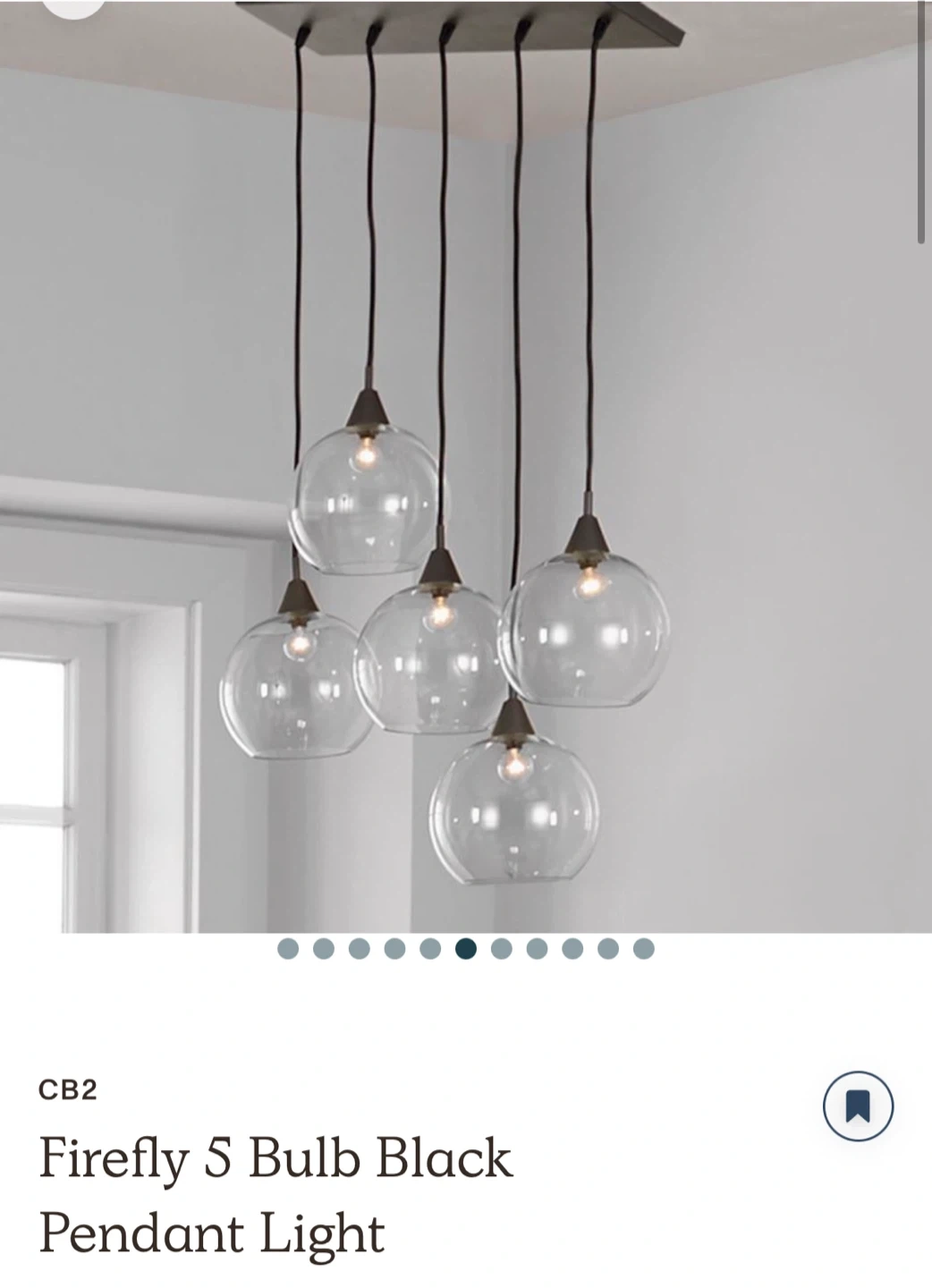Selling a CB2 Firefly 5 Bulb Black Pendant Light! It features 5 glass globes with black wires and a black base. It includes all the mounting hardware.