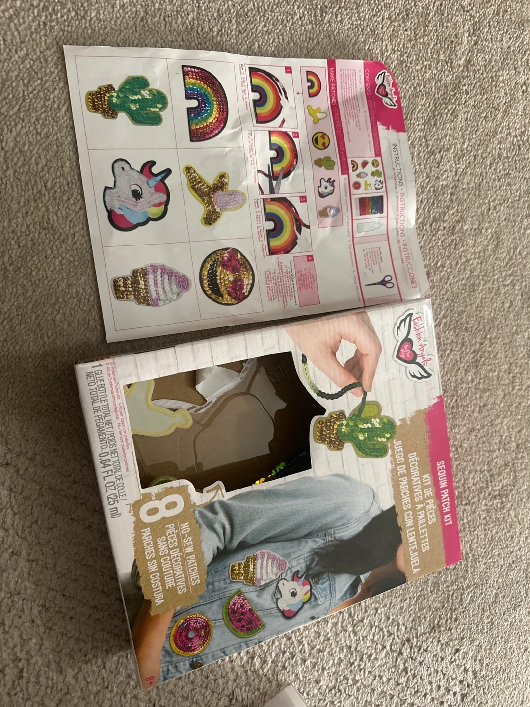 Selling a brand new Fashion Angels Sequin Patch Kit! This kit includes 8 no-sew patches for adding some sparkle to your clothes or accessories. It comes with everything you need to create your own decorative patches, including glue. Perfect for adding a personal touch to your style!