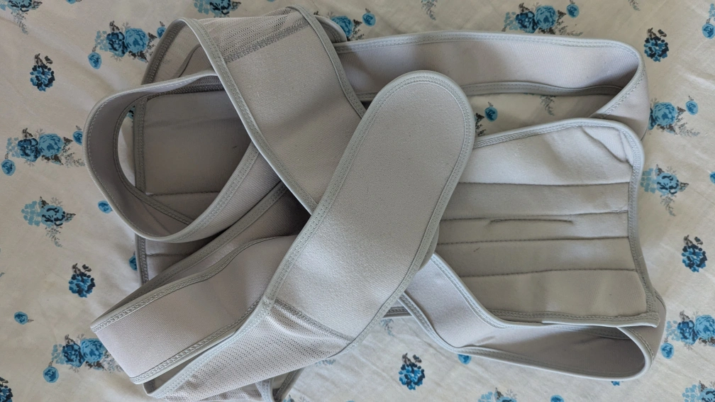 This posture corrector provides great back support! It's grey and adjustable for a comfortable fit. Perfect for helping improve your posture throughout the day