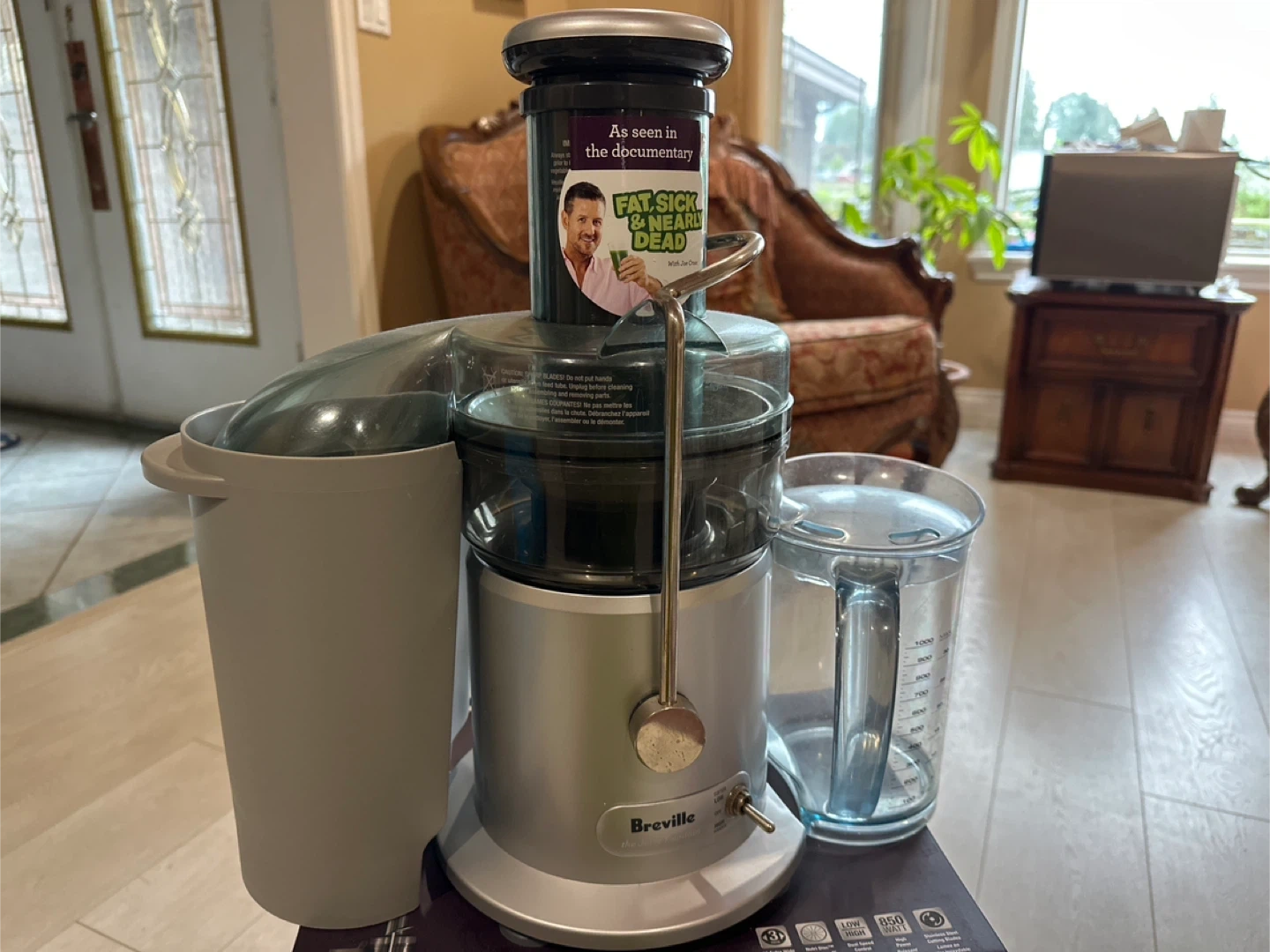 Selling a Breville Juice Fountain Plus juicer. It's in like-new condition and comes with the box! This model features a patented extra-wide chute for whole fruit feeding. It also has a unique direct control feed system. Get your juice on!