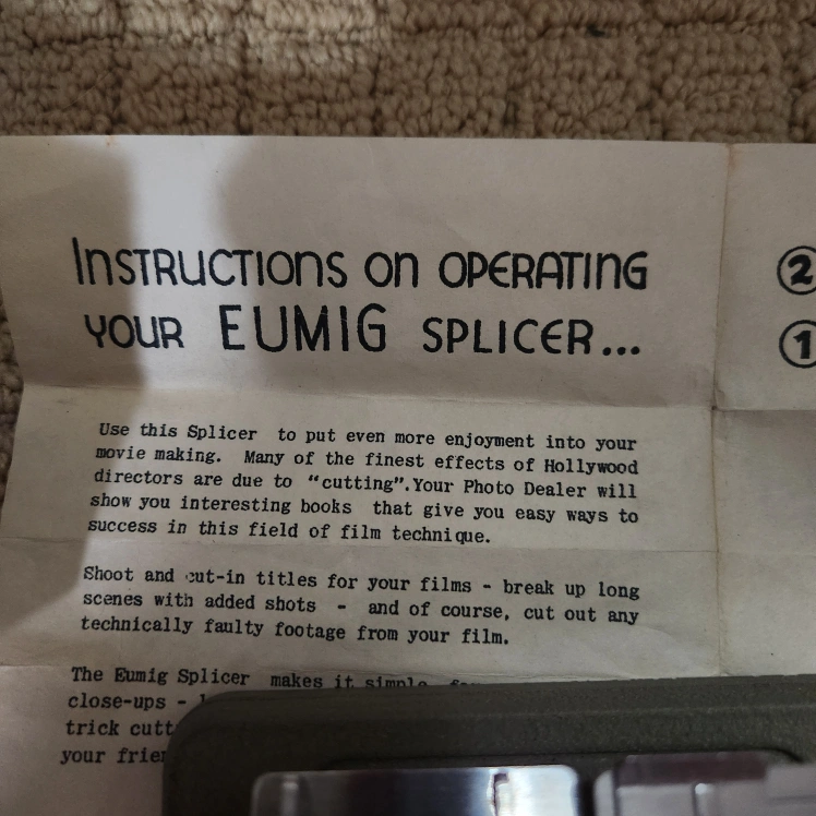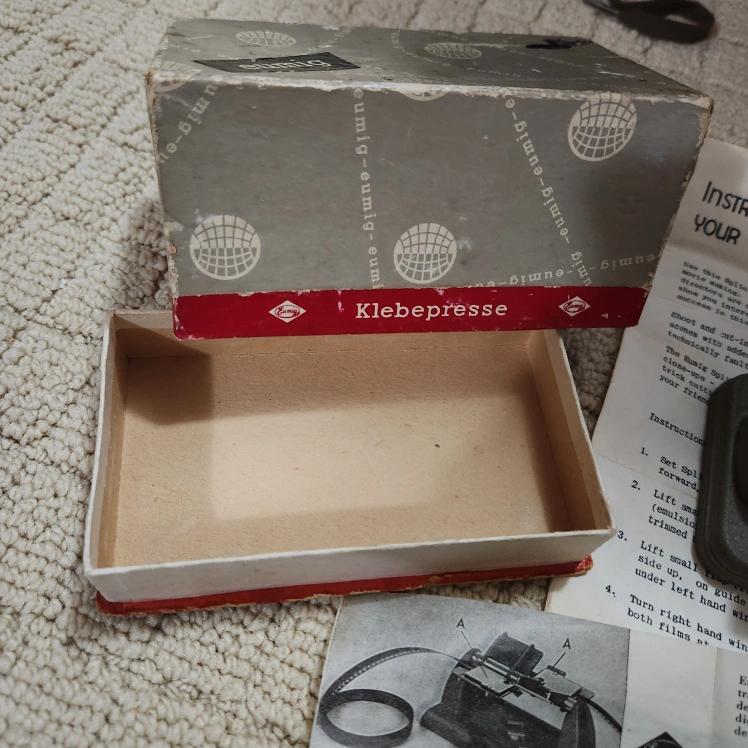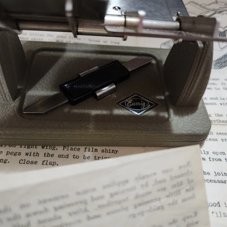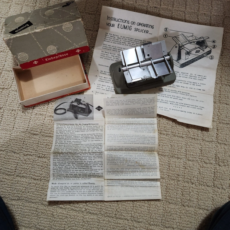 Selling a vintage Eumig film splicer! It comes with its original box and the instruction manua english and germanl. Perfect for anyone interested in film editing or vintage equipment