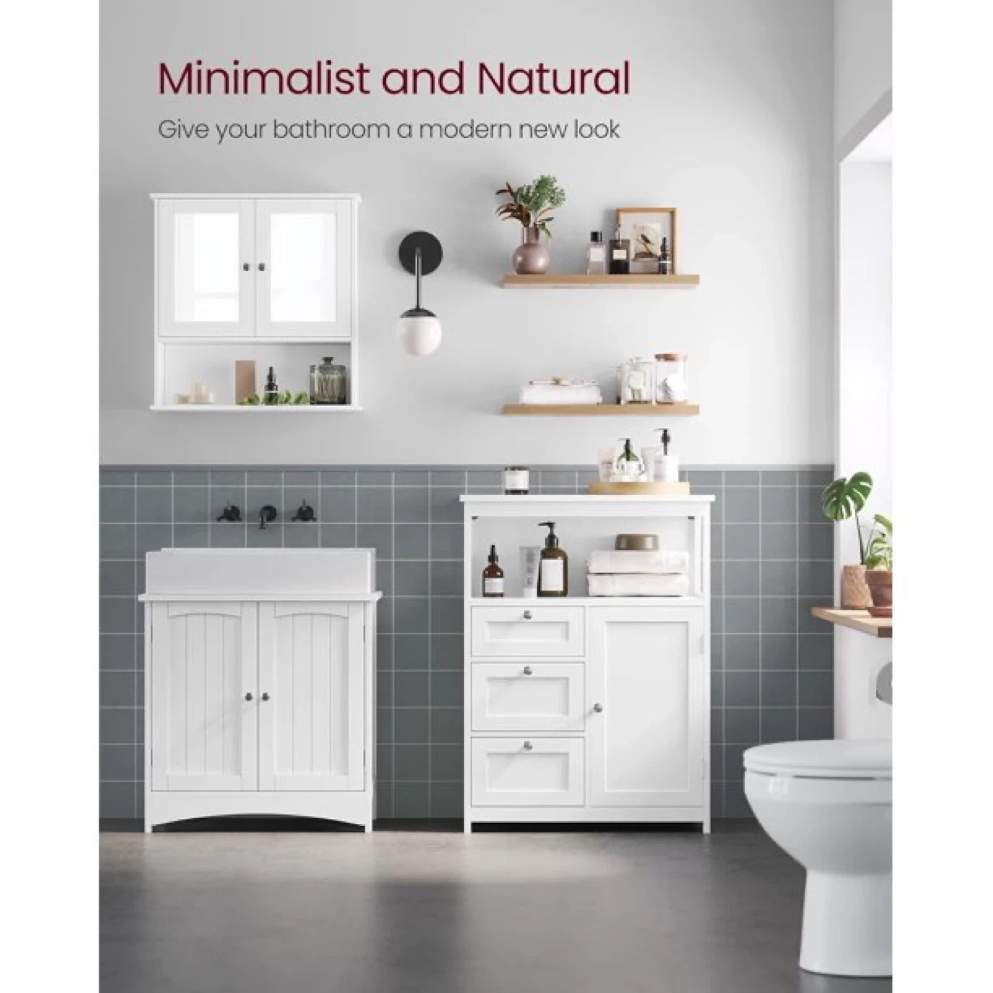 Vasagle White Bathroom Floor Cabinet with Storage UBBC542P31V1