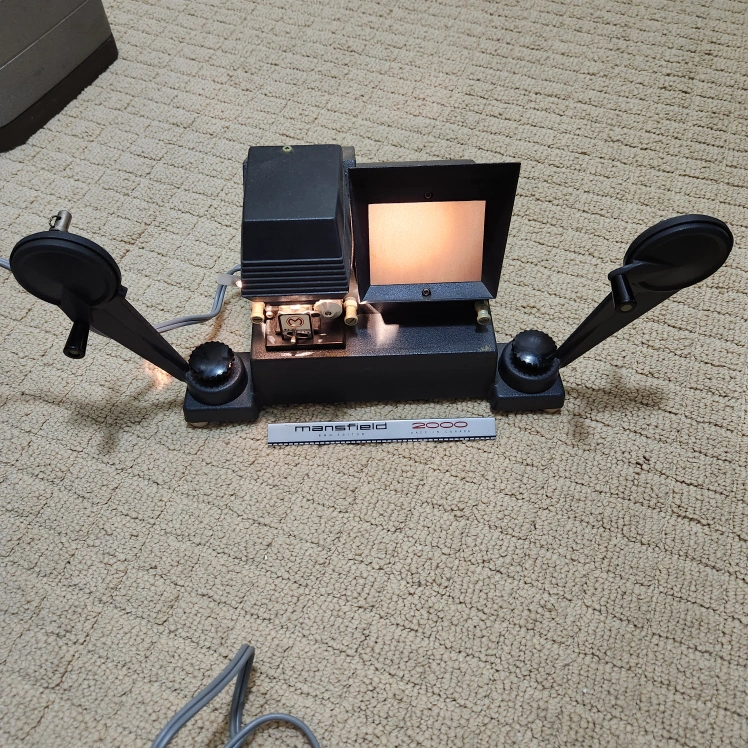 Selling a Mansfield 2000 8mm Editor! It's a neat piece of equipment, made right here in Canada. Perfect for anyone working with 8mm film or wants a display.. seems full functional name plaque hs come loose.