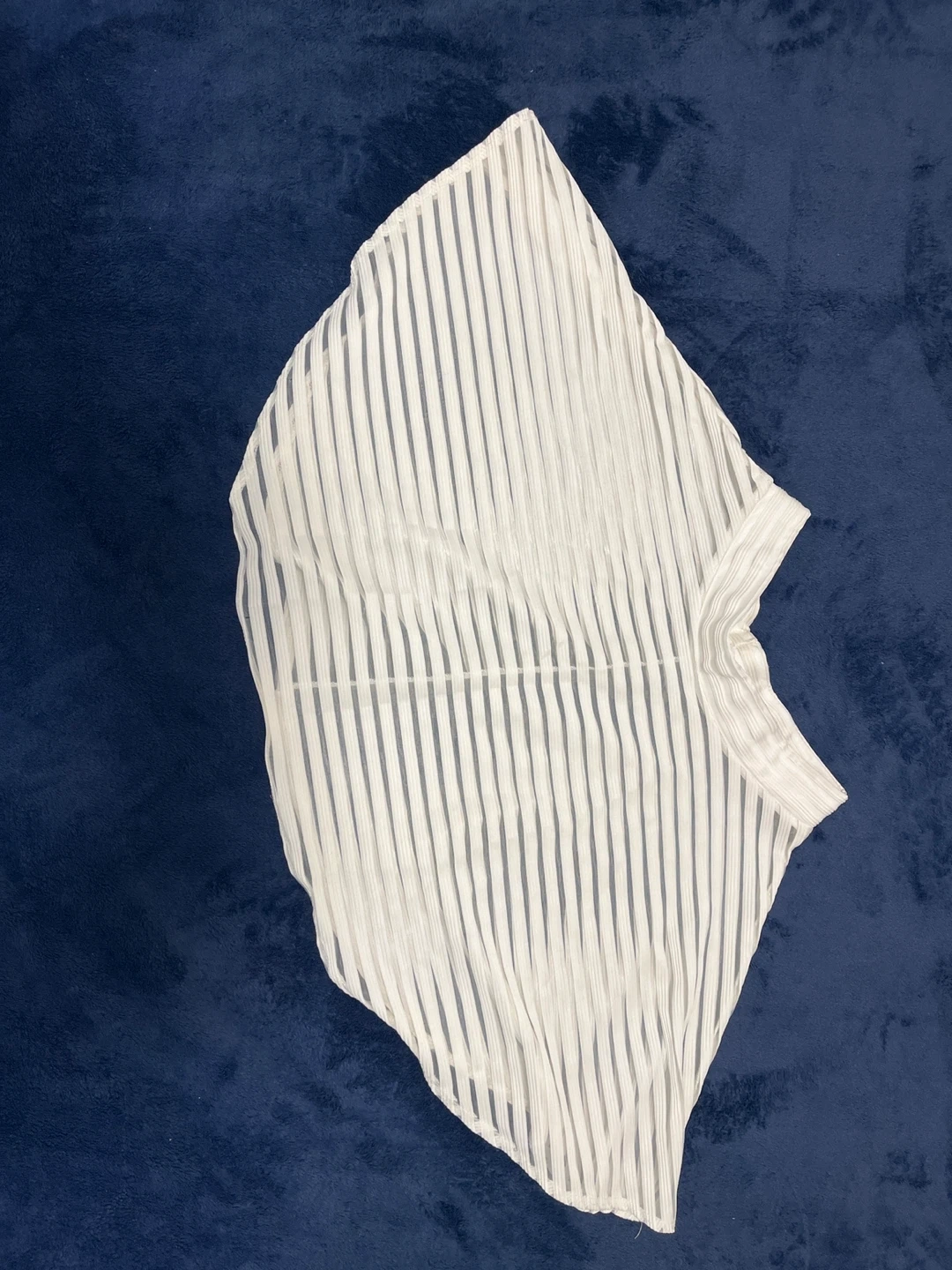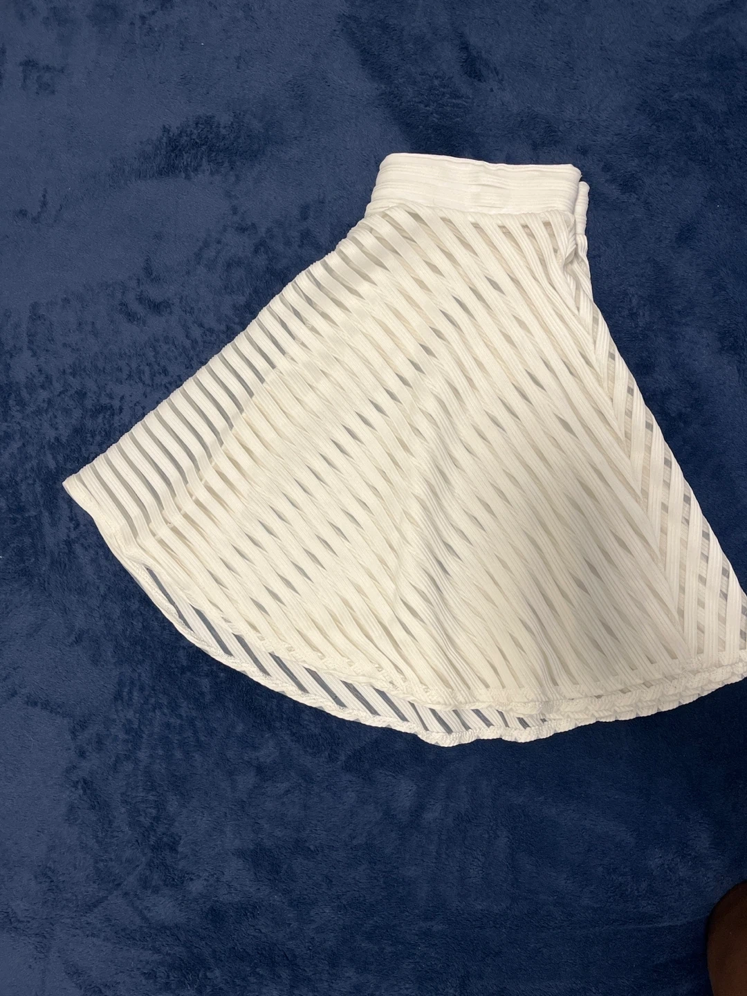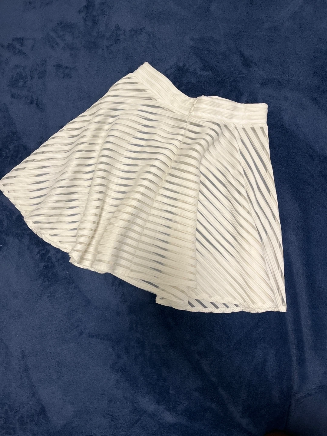 Selling a cute white skirt with a striped pattern! It's in great condition and would be a lovely addition to your wardrobe. It's perfect for a casual day out or dressing up for a special occasion. The skirt is made of a lightweight material, making it comfortable for warmer weather. I am open to negotiation!