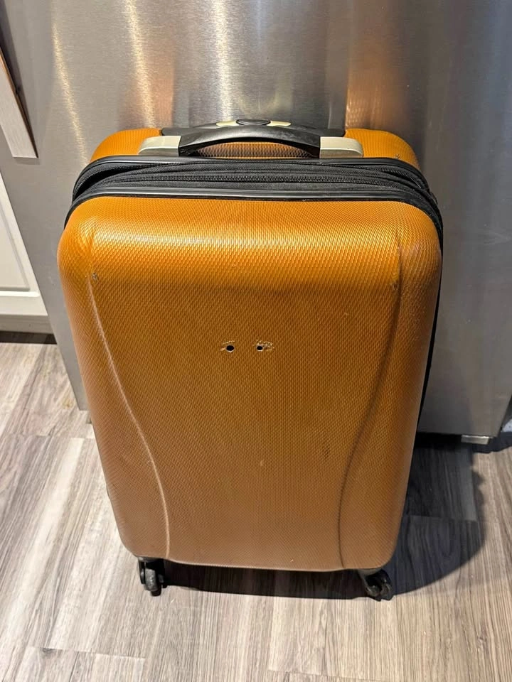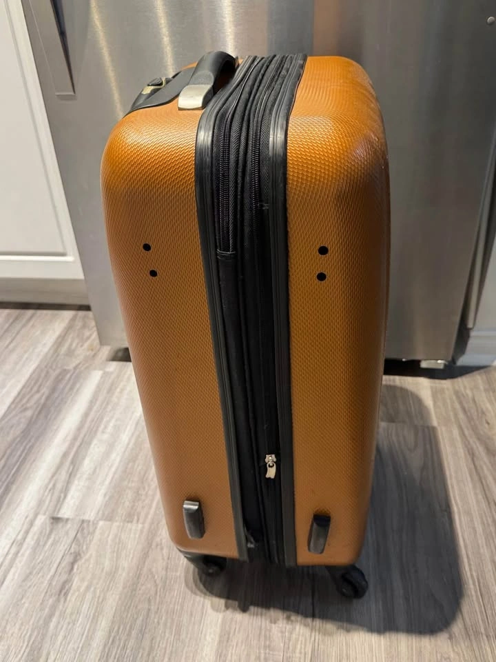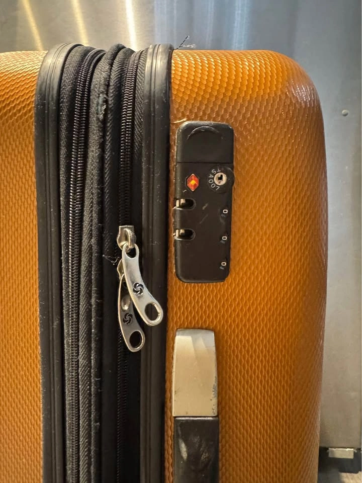 The logo badge and 2/4 "feet" on the side have fallen off, leaving double holes in each spot. The handle is "sticky" and needs some tugging to fully open/close. I'm not sure if the built-in lock is broken or if I lost the combination, but the zippers have holes that I've been using a separate lock in. Otherwise it's fine.