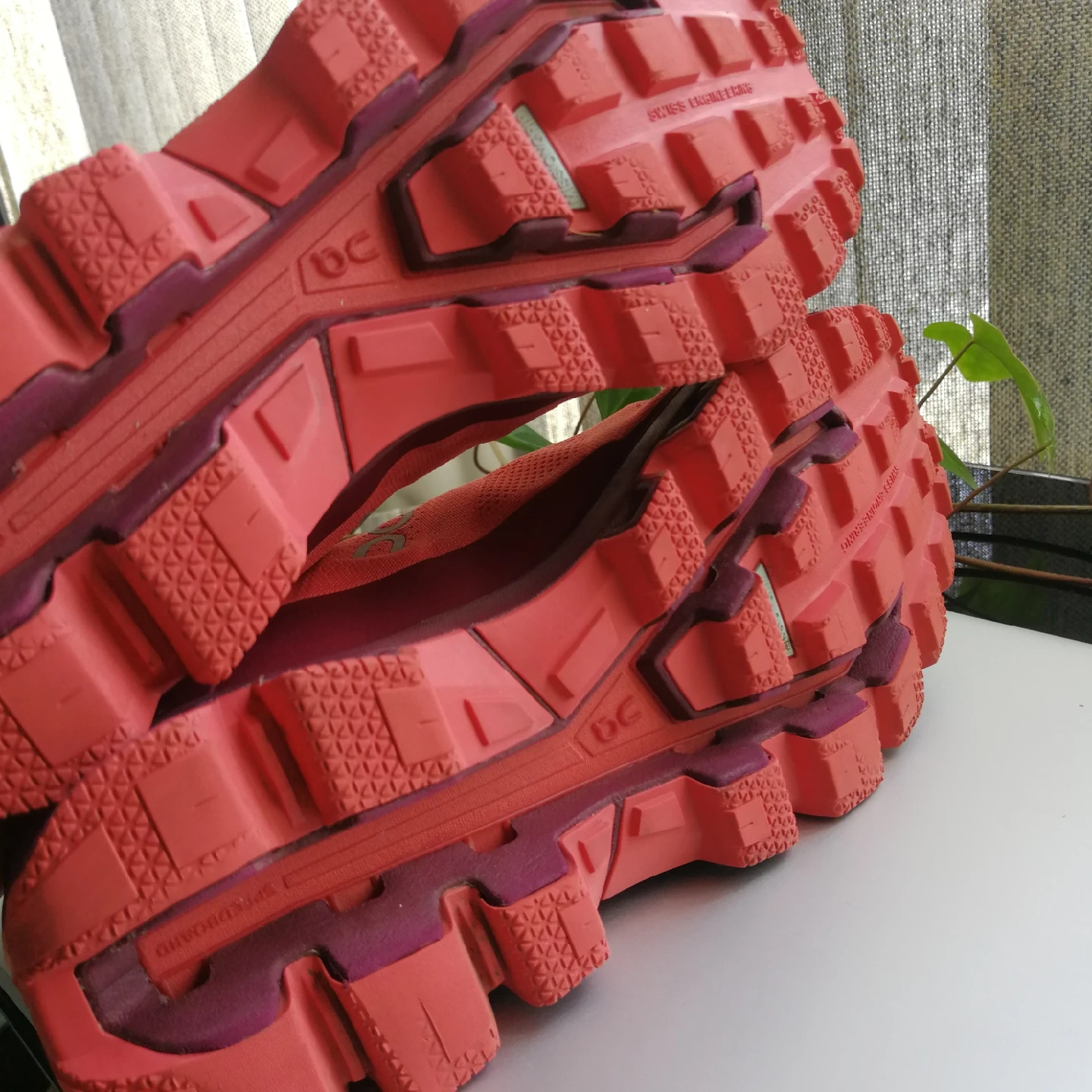 Selling a pair of On Running shoes for women! They're a vibrant coral and burgundy colour, perfect for hitting the trails. Size US 8. 5. They have Swiss engineering and are designed for comfort and performance. Great for anyone looking for reliable and stylish running shoes!