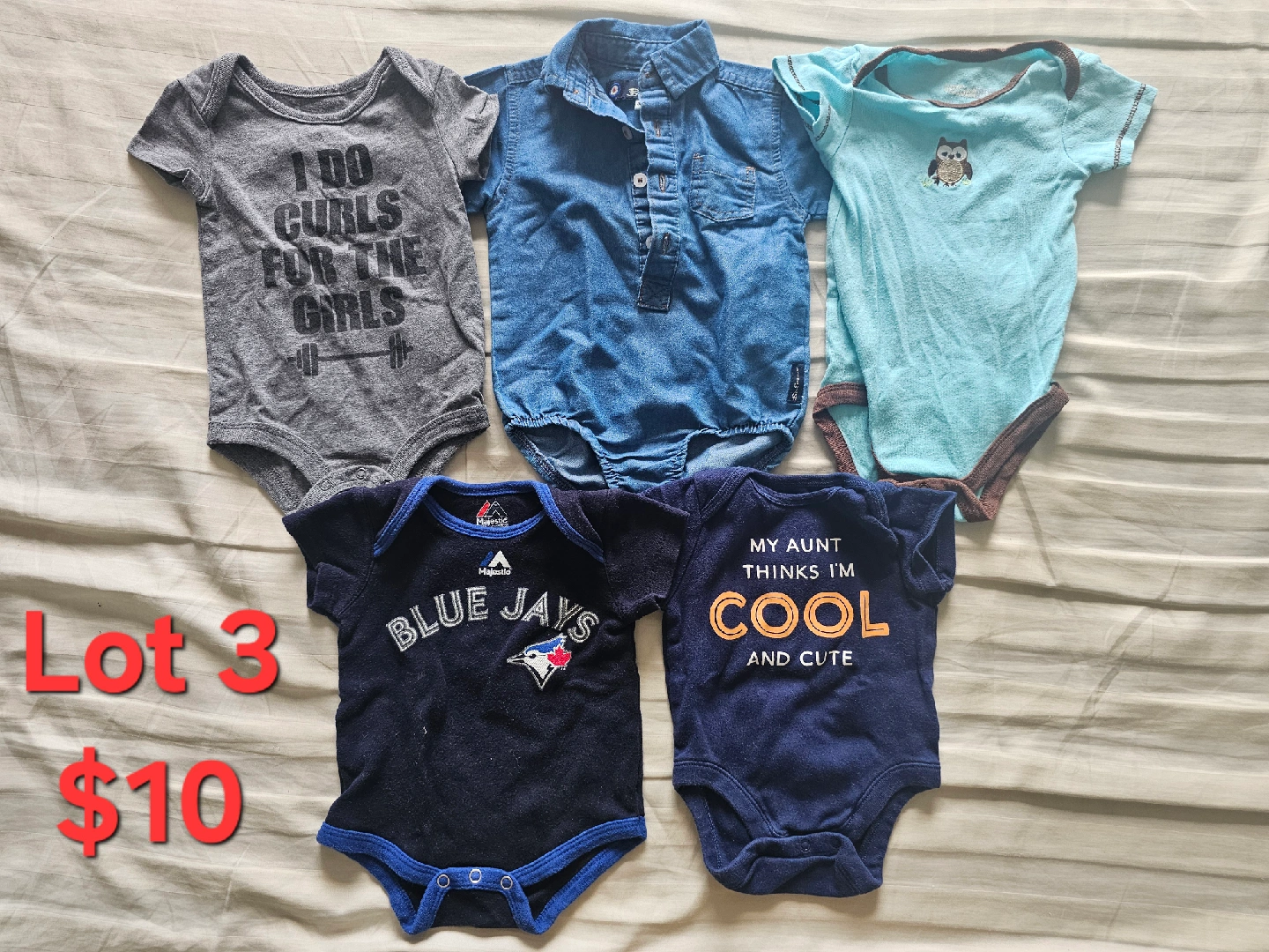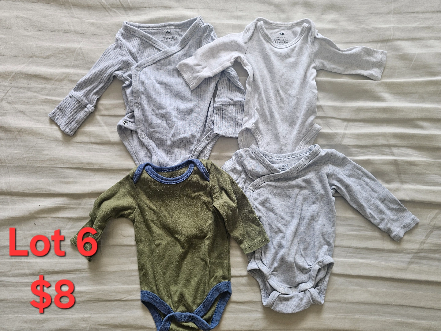 Selling a few lots of baby clothes. Great for newborns and infants! All in good condition and ready for a new home. Most of them are used only couple of time with some never used. Comes from smoke free and pet free home. Buy as lot only. I have more lots so ask for images if you want to see or check my other listing. Pickup only. Take everything for $50 including other lots not posted here (75 clothes) + some additional hats, mittens, toys and clothes.